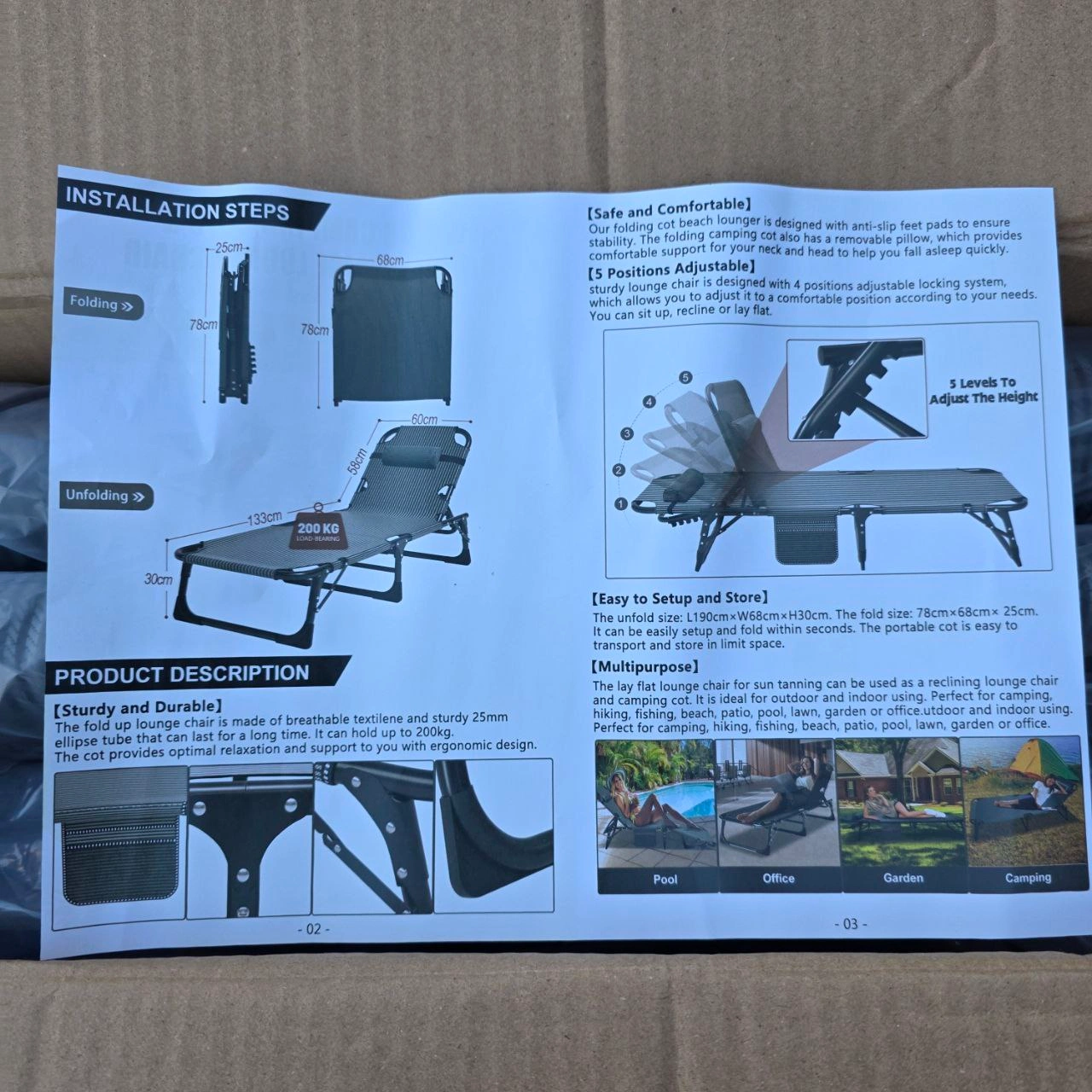 Slsy Sleeping Cots for Adults, 5-Position Folding Chaise Lounge Chairs Outdoor, Portable Folding Bed Cot Lounge Chair for Beach Lawn Camping Pool Sun Tanning. Brand new, pick up Oakville.