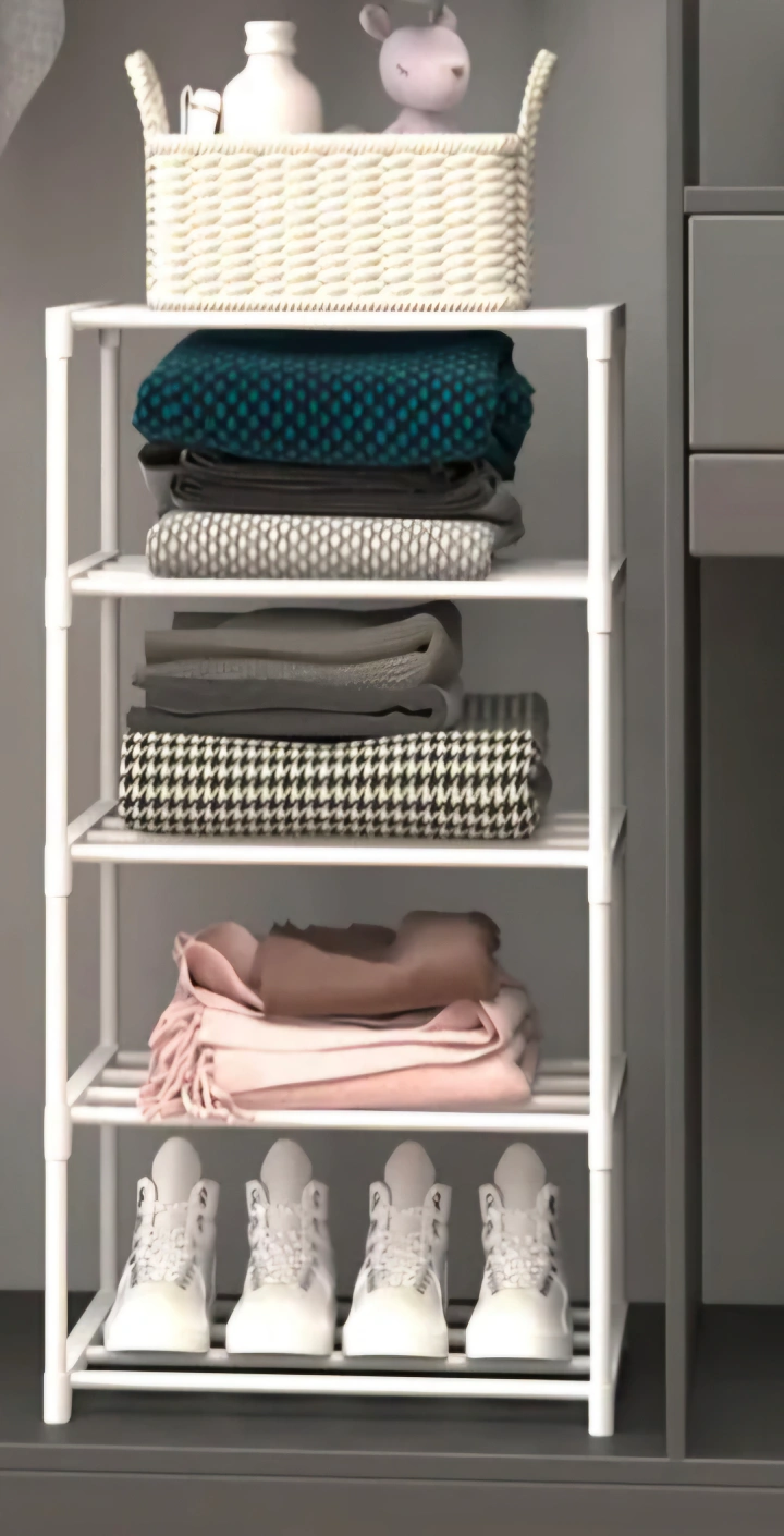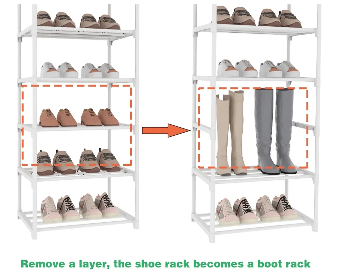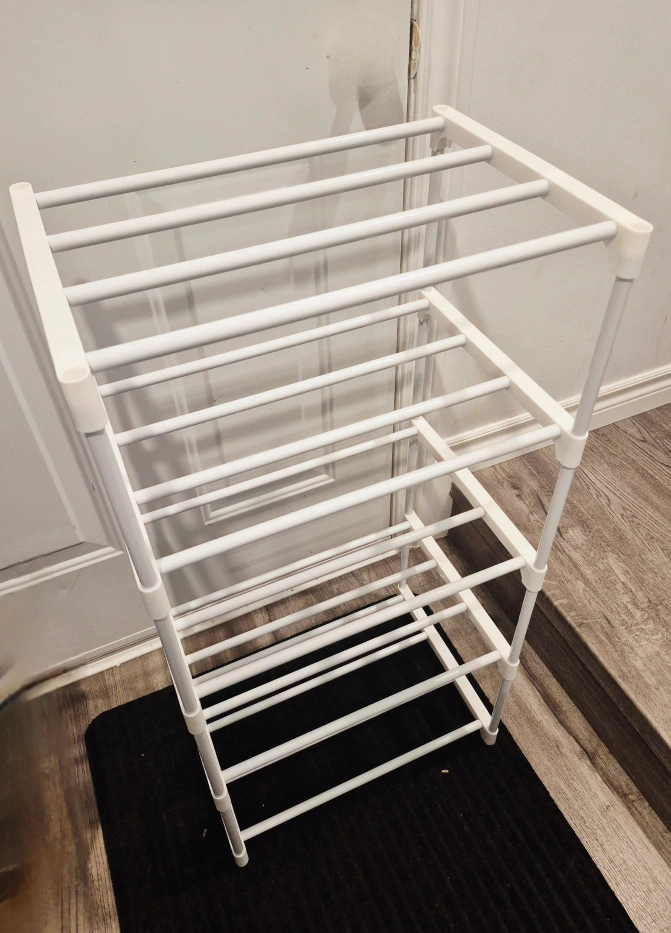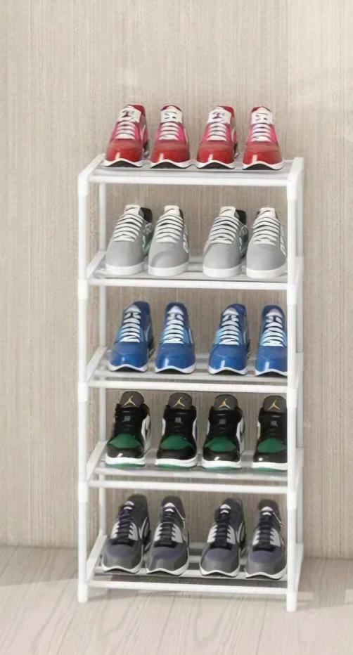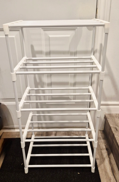 Declutter your entryway with this handy 5-tier organizer! Ready to organize your footwear. Narrow design and it should fit nicely in most spaces.