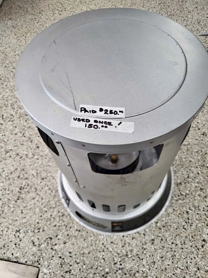 50,000-80,000 but propane heater. Used once. Paid $250...buy now $140
