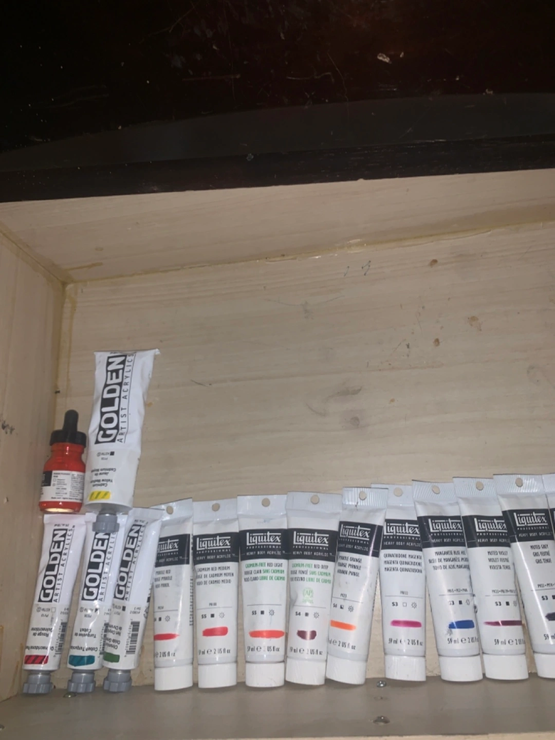 Assortment of Liquitex and Golden acrylic paints. Various colours and sizes. Various Tubes and one bottle of ink lemme know what you want and what you'd like to pay, great for painting projects.hugher rhe series higher the price, Most are s3, s4, up to 7 and eight, thanks! Price is per tube I'll do 20 if you buy 3! 40 dollar tubes are 15! Thankyou!