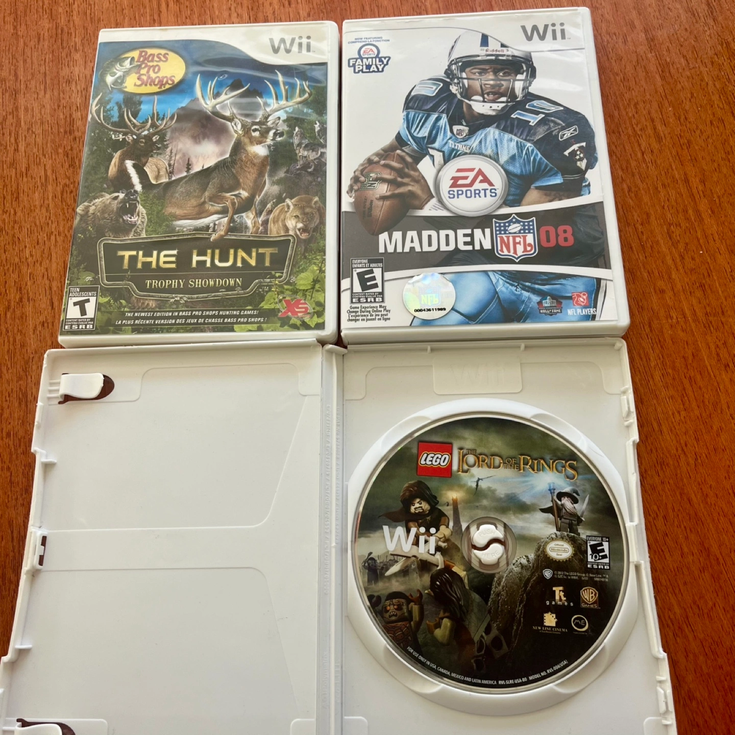 Selling a bundle of used Wii games that includes Bass Pro Shops: The Hunt Trophy Showdown, Madden NFL 08, and Lego Lord of the Rings, ready for a new home where they can provide hours of entertainment. If the ad is up, then yes, it is available! Pick up Montgomery. Cross-posted.