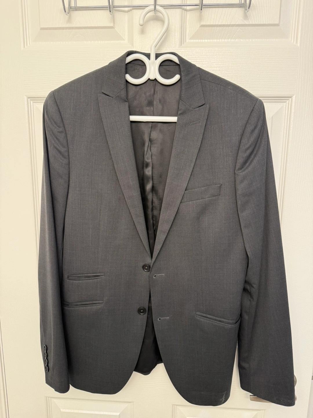 Simons brand 38R men’s blazer in dark grey. In excellent condition. From a smoke-free and pet-free home.