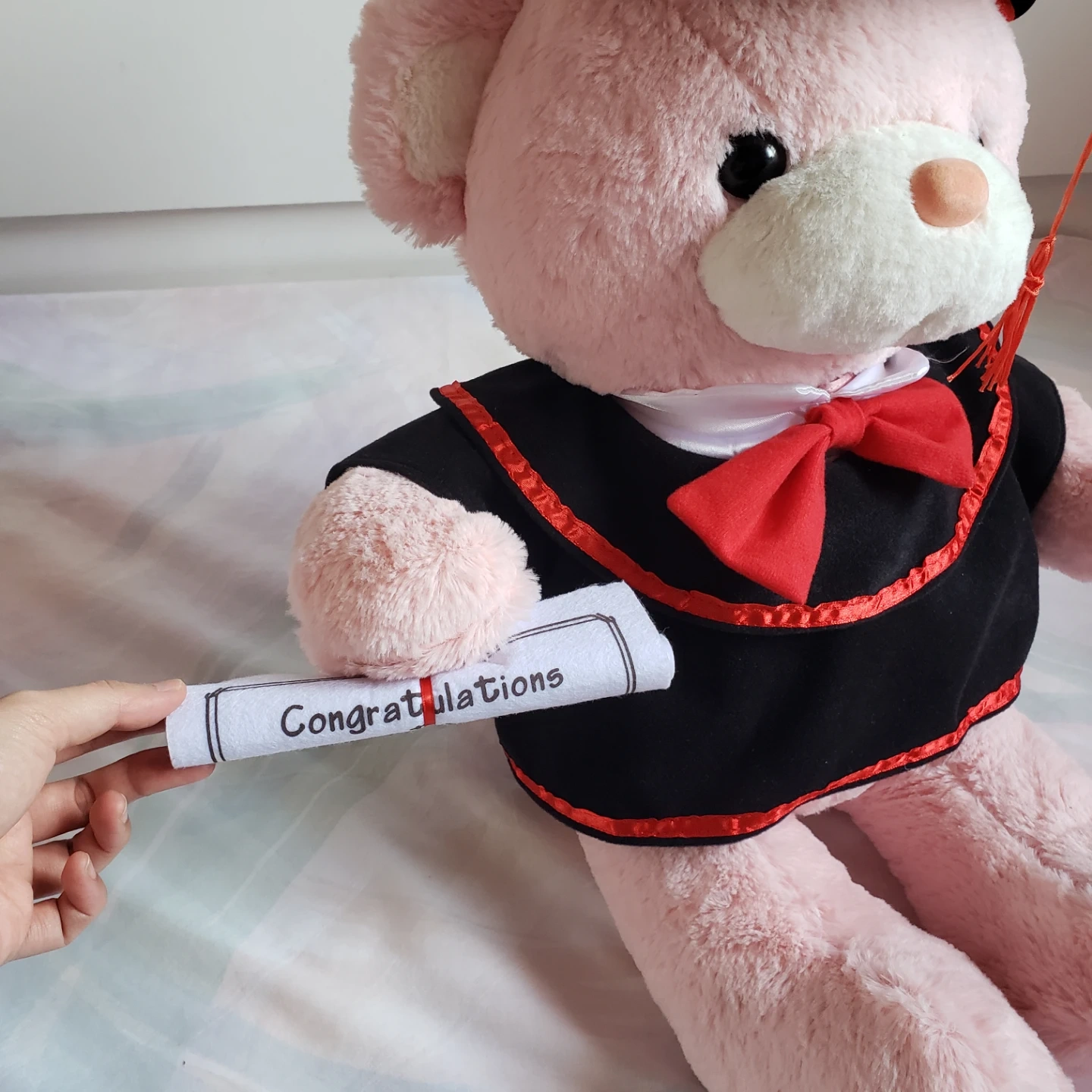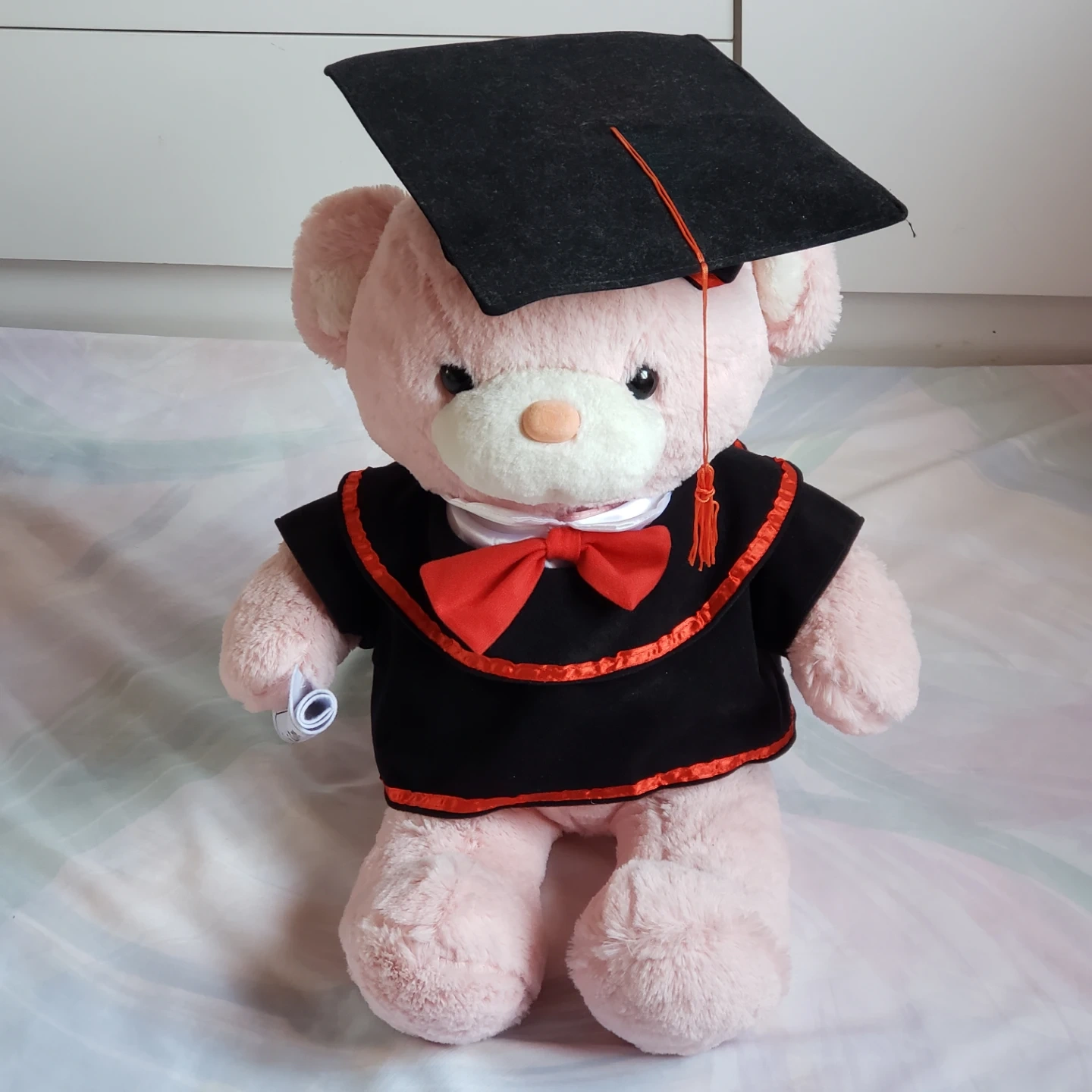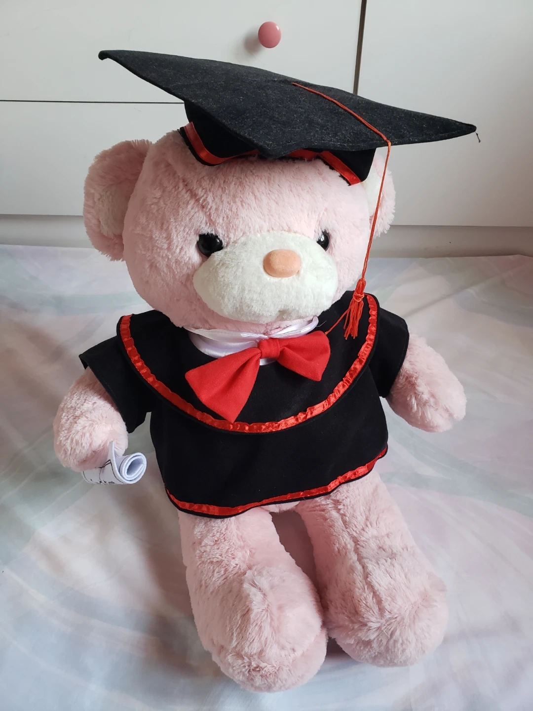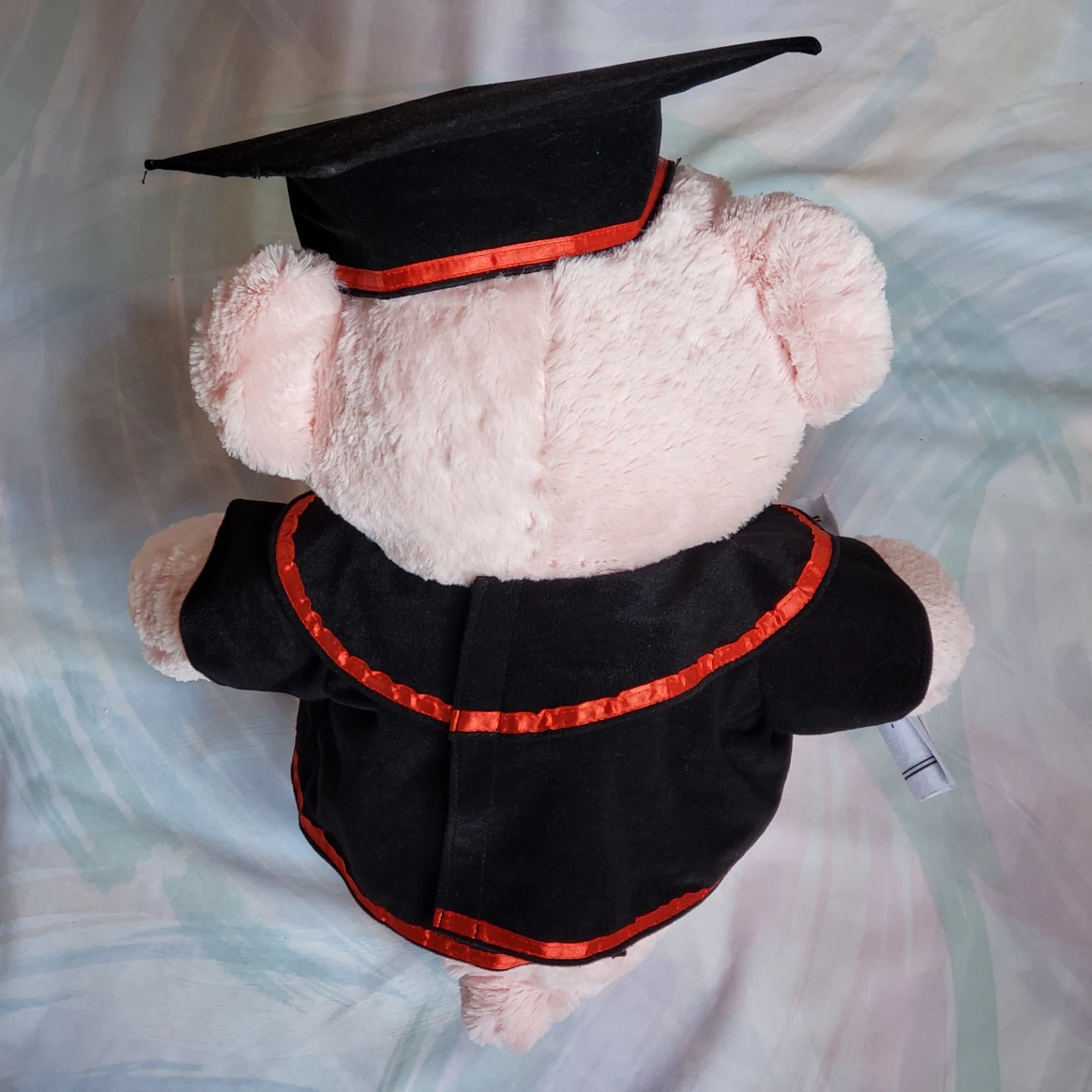 Huggable pink teddy bear for upcoming Graduation Holds a scroll that says "Congratulations" Cap is adjustable at the back Approx. Size: 42cm Height, 38cm Width The hat collects dust easily but it's in excellent condition (no damages/discoloration) Hoping the item finds a new home! From a smoke-free & pet-free home Cash only & exact change All sales are final; no refunds or reservations Pick-up only Location: Richmond Hill Serious inquries only; messaging only through Karrot Thank you for your interest & please check my 200+ listings for more!