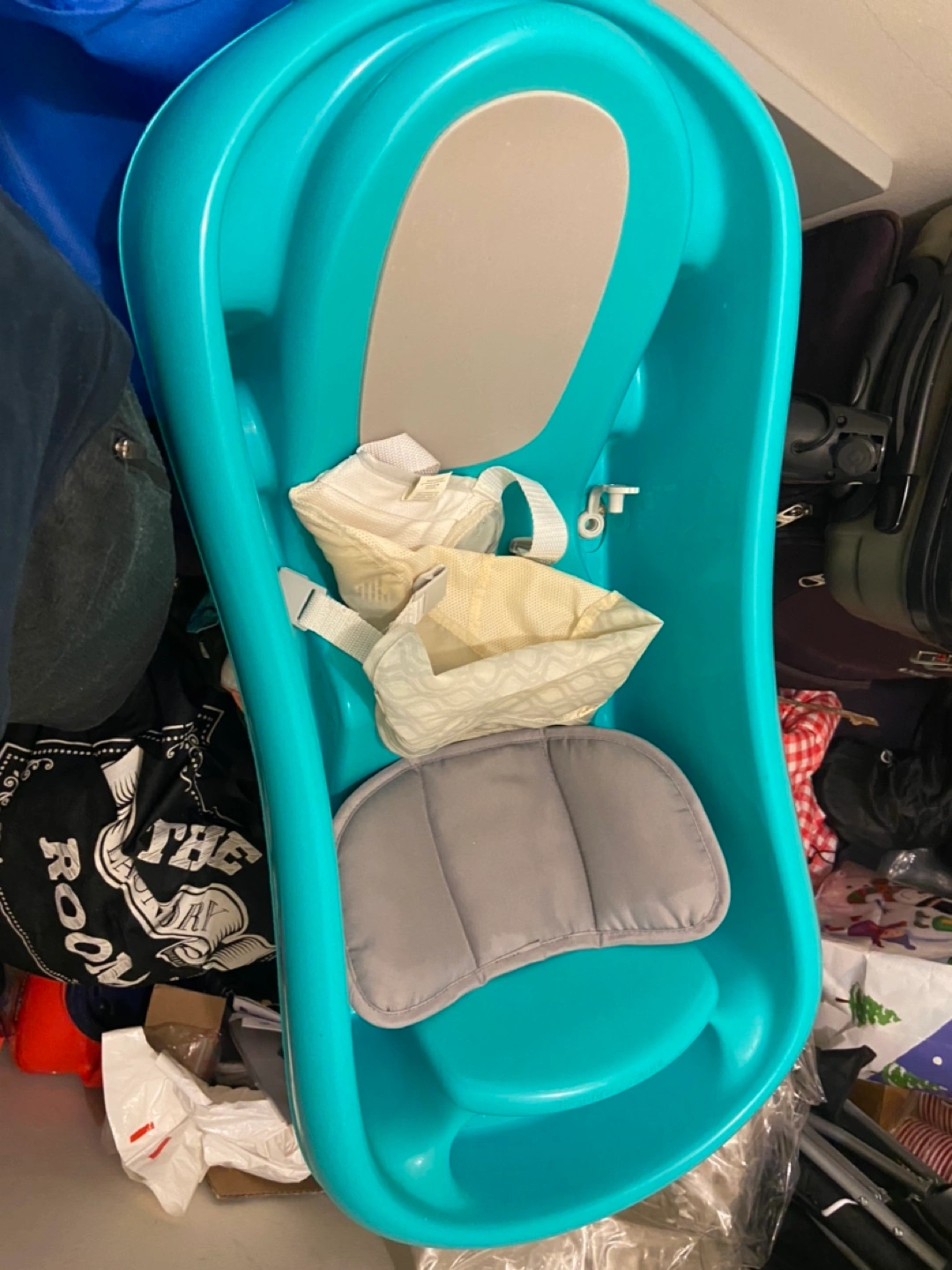 Used but in good condition bath tub for babies , comes with supporting canopy for babies below 1 year old too .