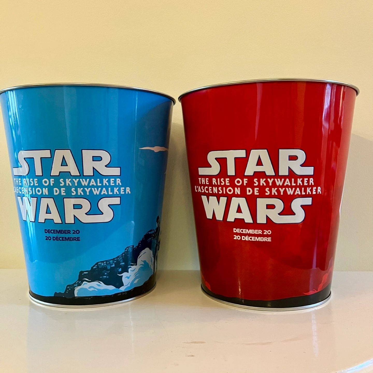 🍿 Pair of 2019 Star Wars The Rise Of Skywalker Popcorn tins from Cineplex theatres. These collectors’ items feature Rey on a blue "light side" bucket and Kylo Ren on a red "dark side" bucket. Excellent condition. *BONUS: Darth Vader mug with a couple of small chips If the ad is up, available these are. Pick up Montgomery. Cross-posted.