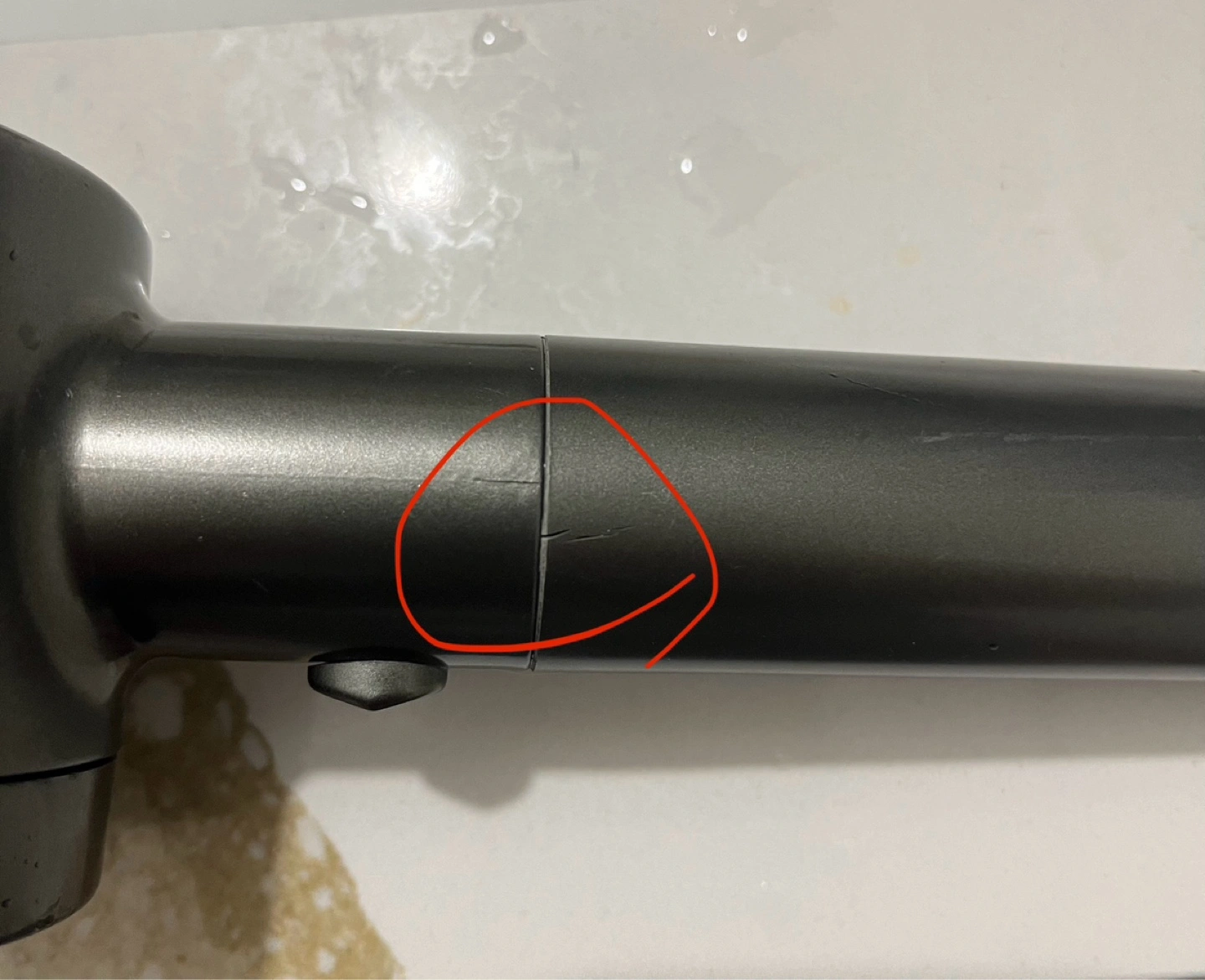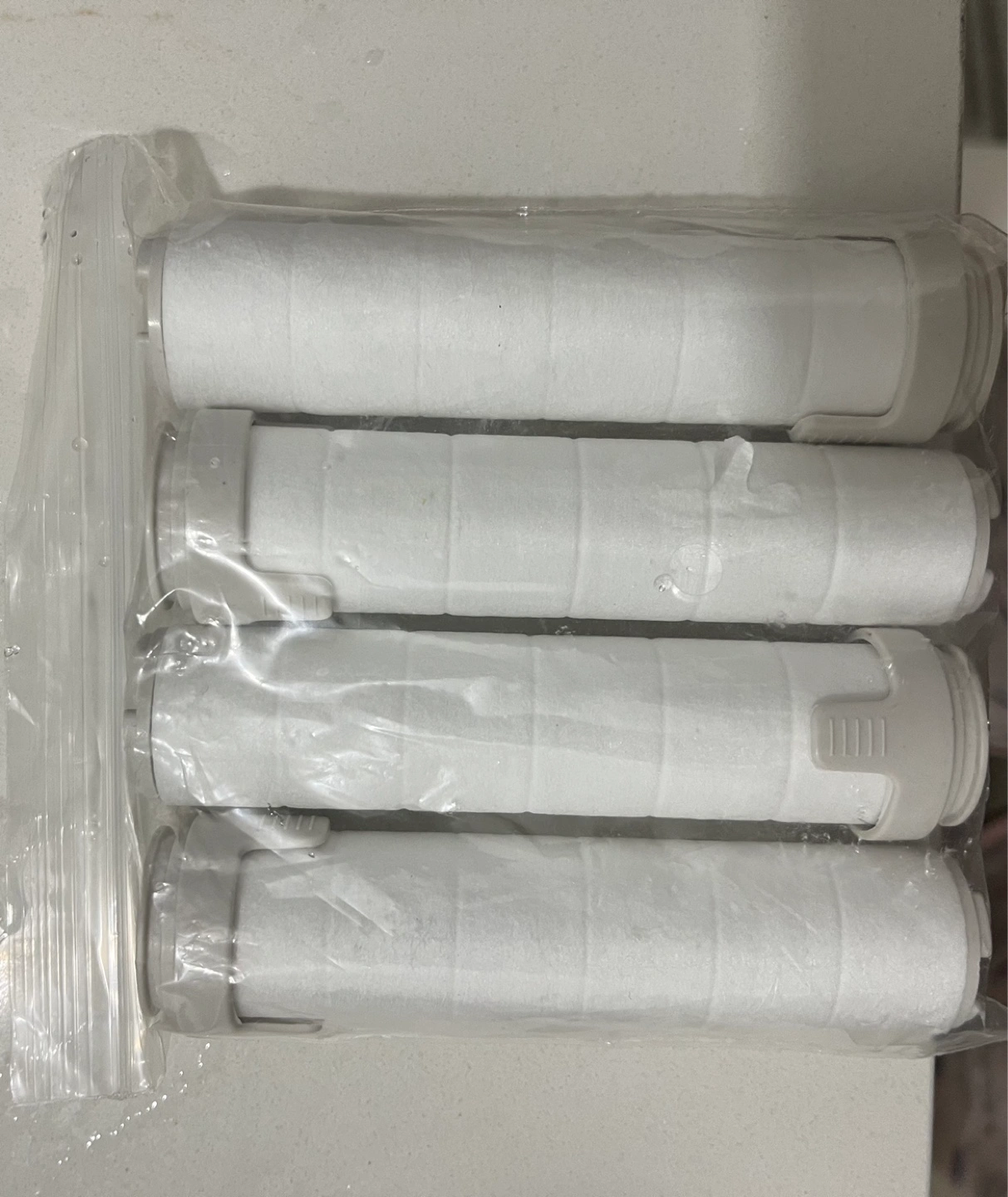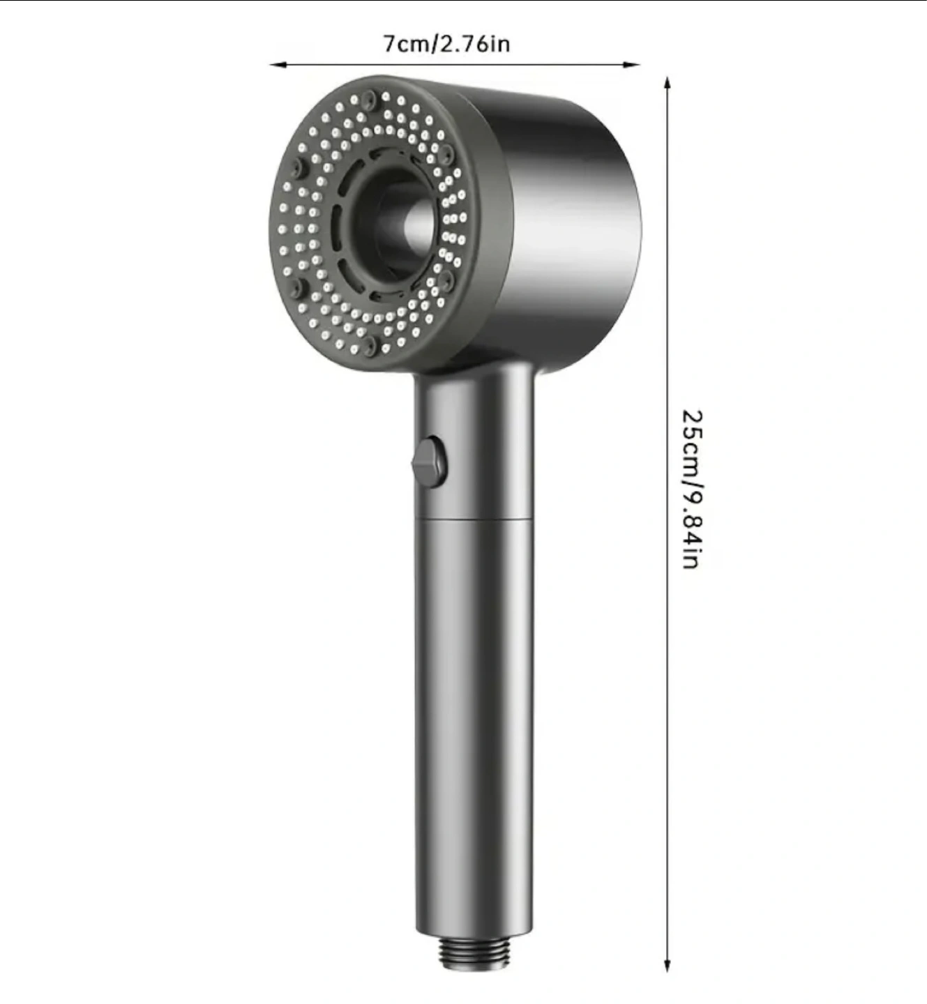 Gray showerhead with four filters there is a crack as you can see in the pictures if you can fix that there’s no problem with it. It works just fine.