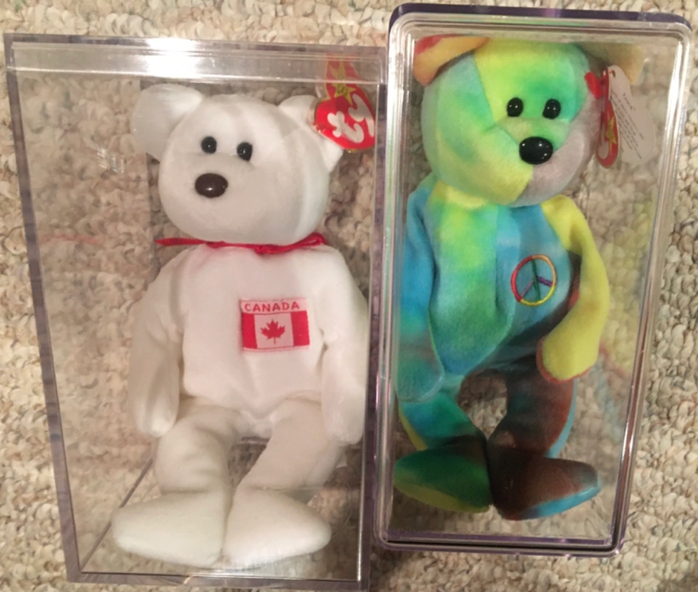 I am offering a set of two Ty Beanie Babies, Maple and Peace, both in mint condition and housed in protective cases. These collectibles are perfect for any Beanie Baby enthusiast looking to add unique pieces to their collection. Maple, the white bear with the Canadian flag, and Peace, the tie-dye bear with the peace symbol, are both rare finds. Given their condition and rarity, I'm pricing them at $25 each, which is a steal compared to what similar Beanie Babies are listed for on Kijiji. * Maple: White bear with Canadian flag * Peace: Tie-dye bear with peace symbol * Both come in protective cases Don't miss out on the chance to own these iconic Beanie Babies! And, just so you know, if the ad is still up, then yes, they are still available; it's like they're waiting for you to rescue them from their plastic prisons!