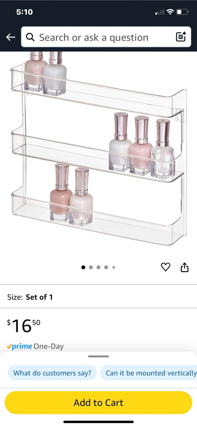 Acrylic nail polish organizer. Three shelves. Wall mountable. Includes mounting hardware. Clear plastic, 2 shelves for $10.00, brand new, never used. PICK UP PICKERING WHITES RD & STROUDS LANE