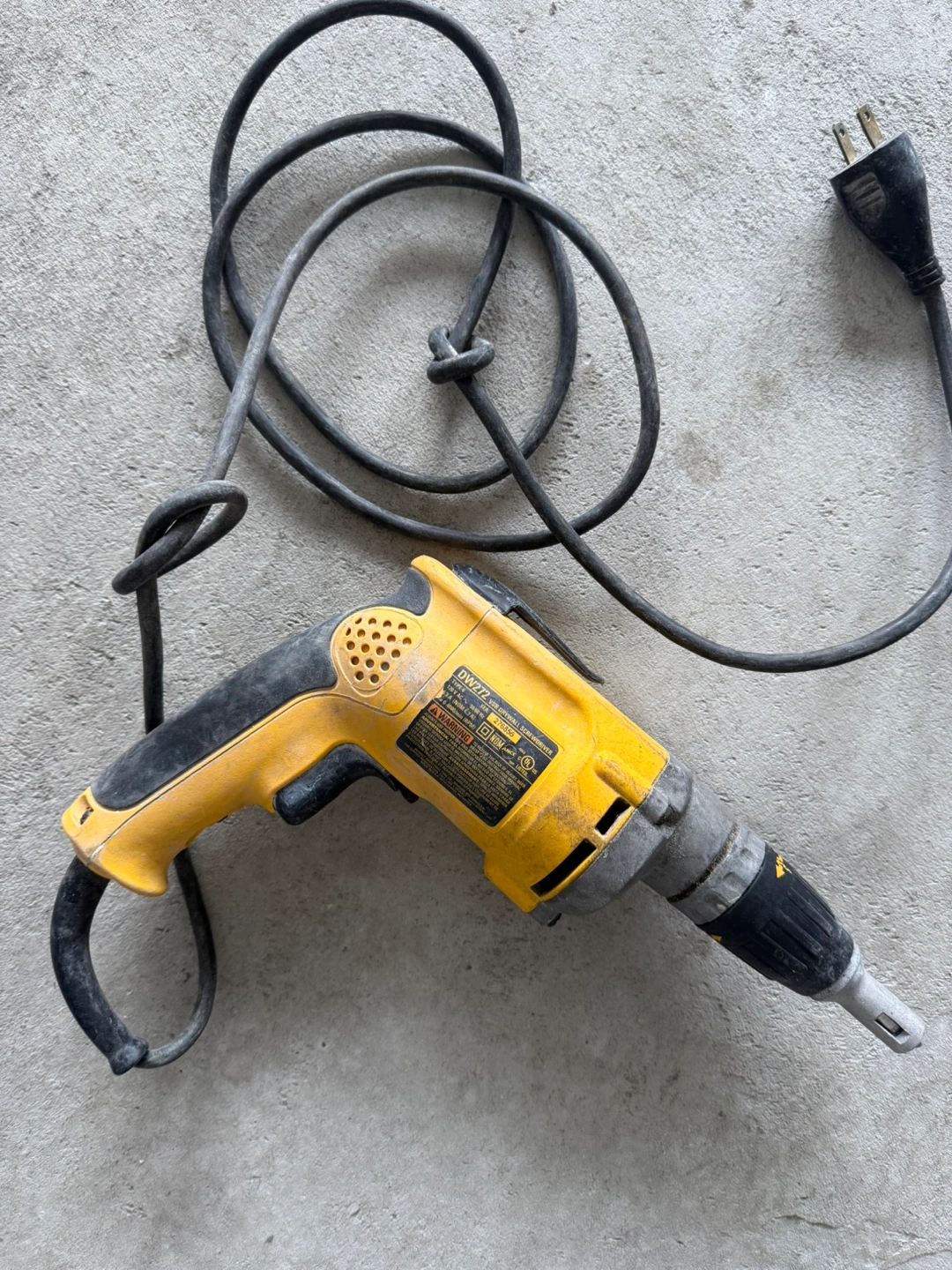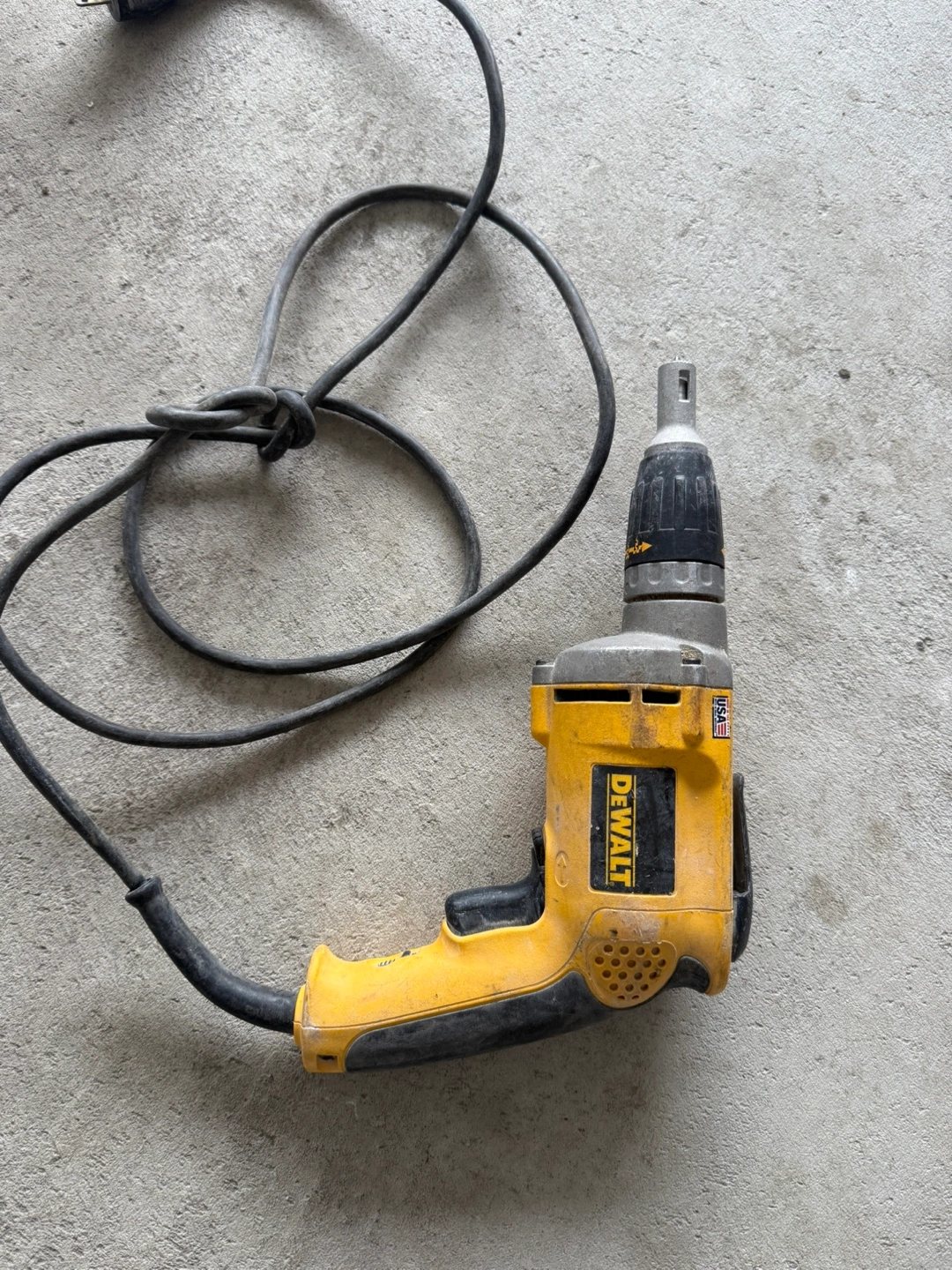 Used Dewalt screw gun. Power cord included. Shows some wear from use.