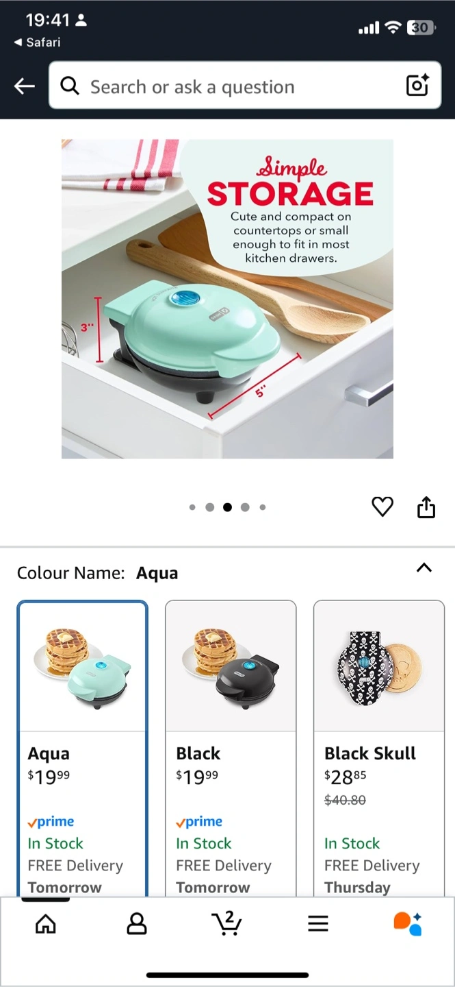 Cute and compact waffle maker. Perfect for small countertops or kitchen drawers. Makes delicious mini waffles. Used a few times but I’m more a pancake person