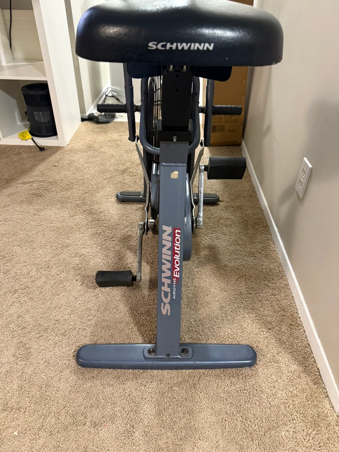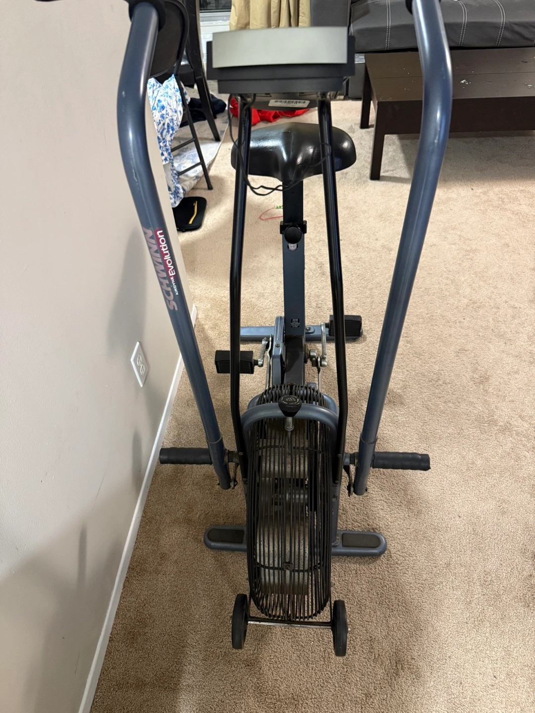 Schwinn Evolution Comp Airdyne exercise bike. Features a fan-based resistance system. Digital console tracks workout data. Great for a home gym. Pick up at Frobisher lane.