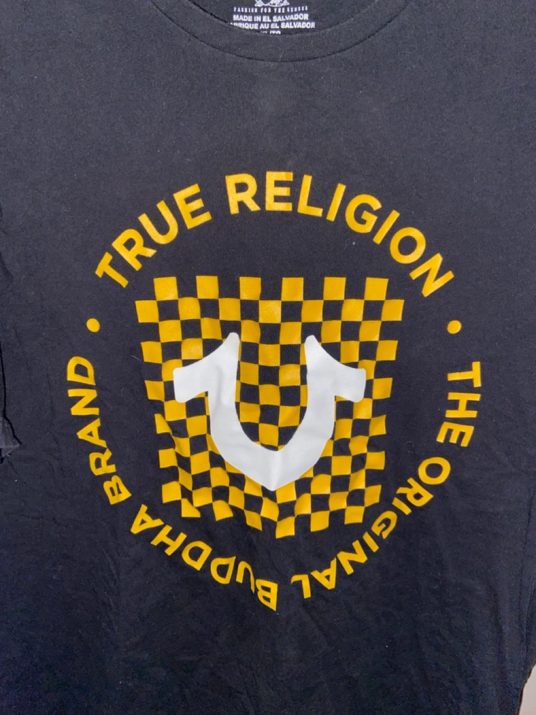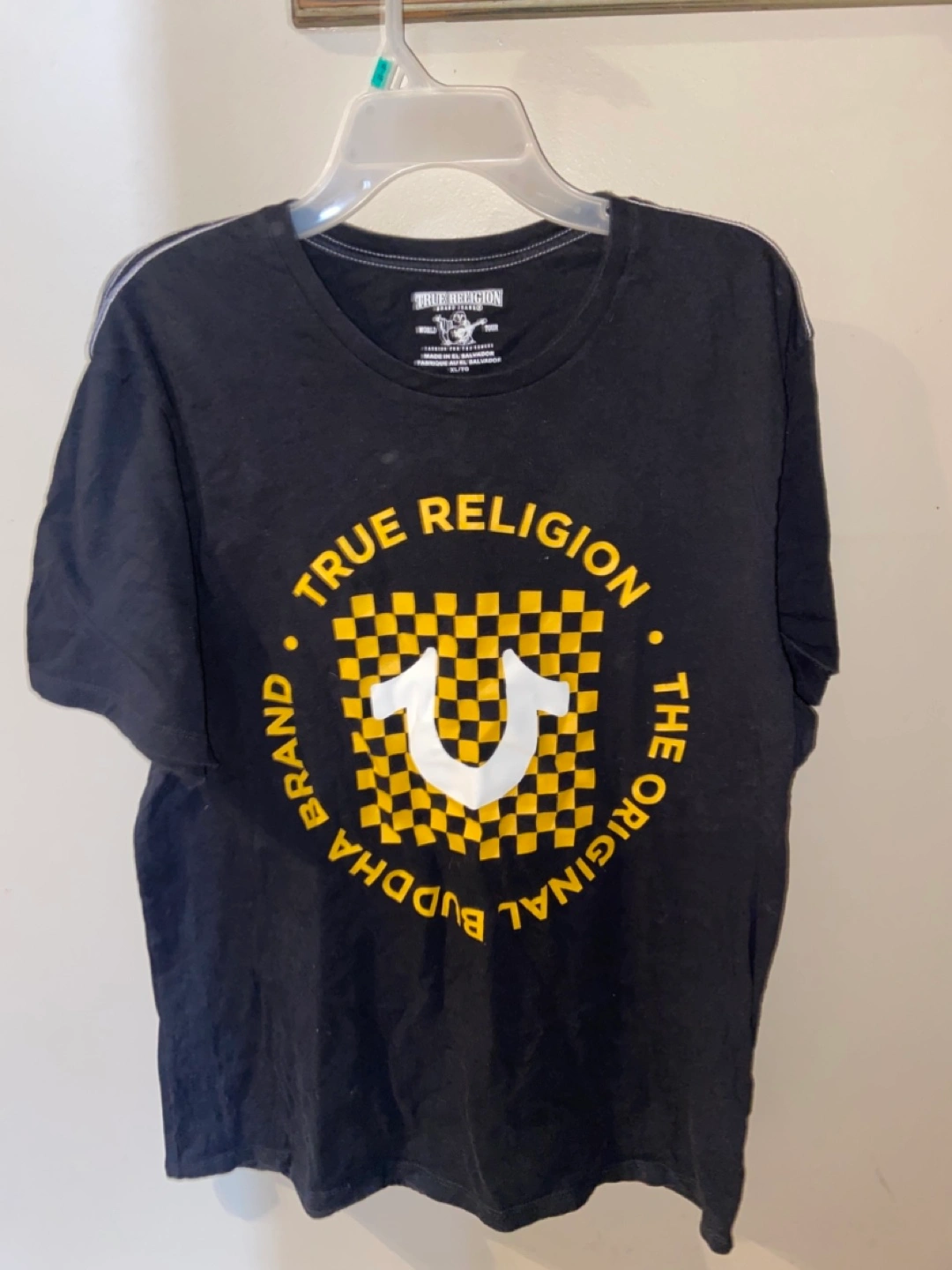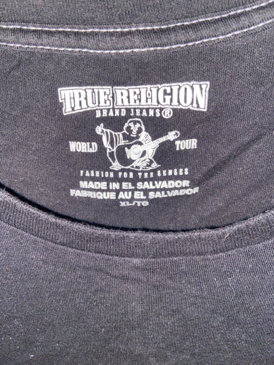 True Religion T-shirt szXL Check out this stylish True Religion T-shirt, perfect for adding a bit of edge to your casual wardrobe! It’s a black, short-sleeved tee in size XL, featuring a cool checkerboard logo. This T-shirt has been worn and loved, but still has plenty of life left. Specifications: * Brand: True Religion * Size: XL * Colour: Black * Design: Checkerboard logo In good condition Has No Rips. No stains. Hardly worn Cash Payment Only No Refunds / Exchange No try ons, No trading, No holds. All purchases are Finally Sale From a Smoke Free home Fast pick up Confirmed Price-$25 Cash only Pick up- Only at TTC Station- Coxwell subway station Located In East York, Toronto If the ad is up, it’s still available. Get it before it’s gone!