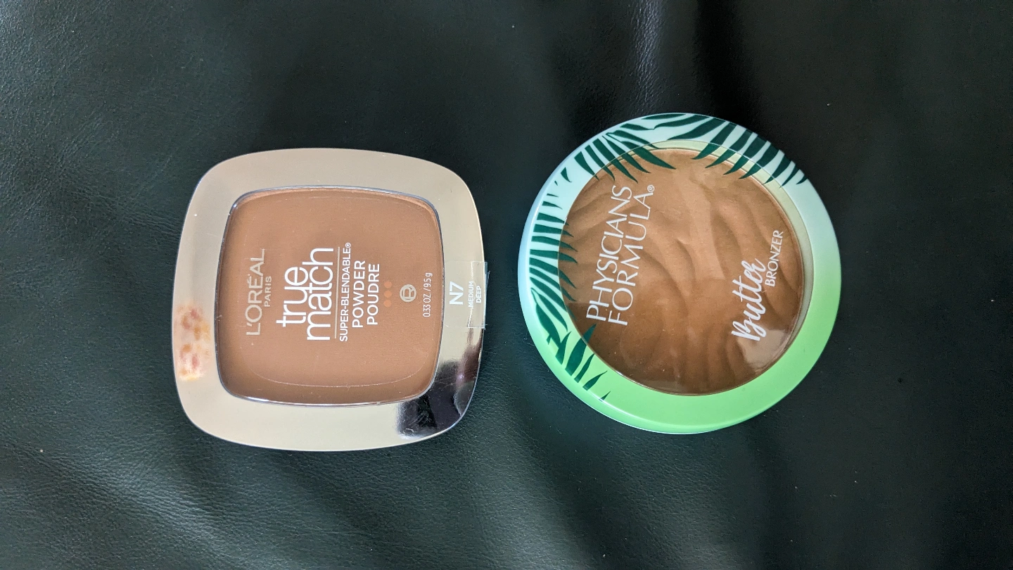 L'Oréal True Match Super-Blendable Powder in shade N7, Medium Deep.Physicians Formula Butter Bronzer.