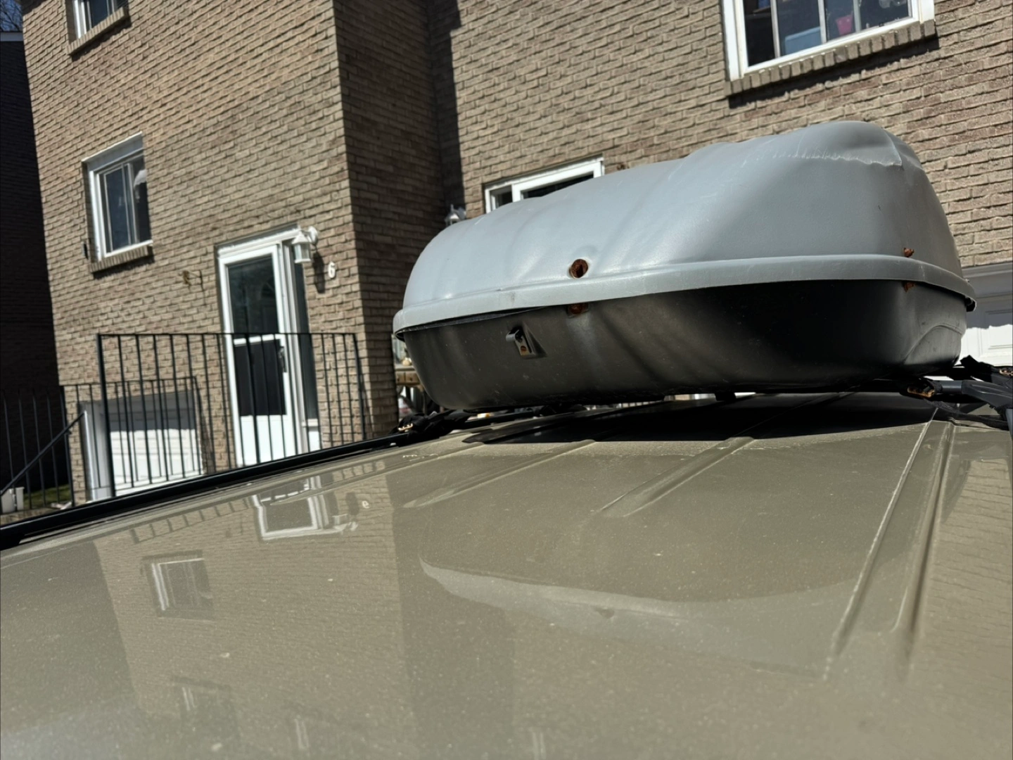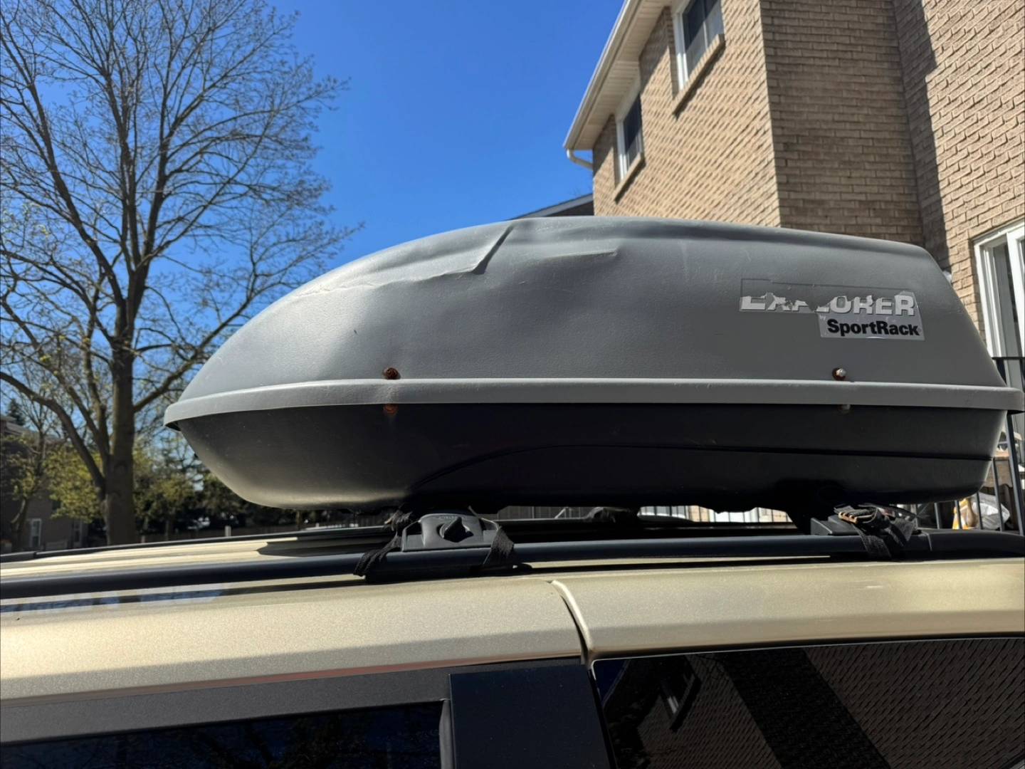 Used car top carrier with key. Grey plastic. Some minor cosmetic damage. Attaches to vehicle roof rack. Smoke free pet free Pick up only. Closed to Fairview mall in Kitchener Only serious inquiries Cash only low ballers will be ignored