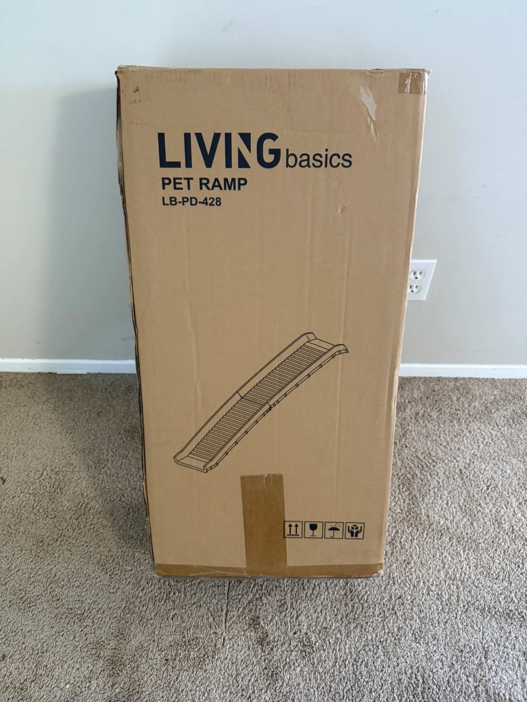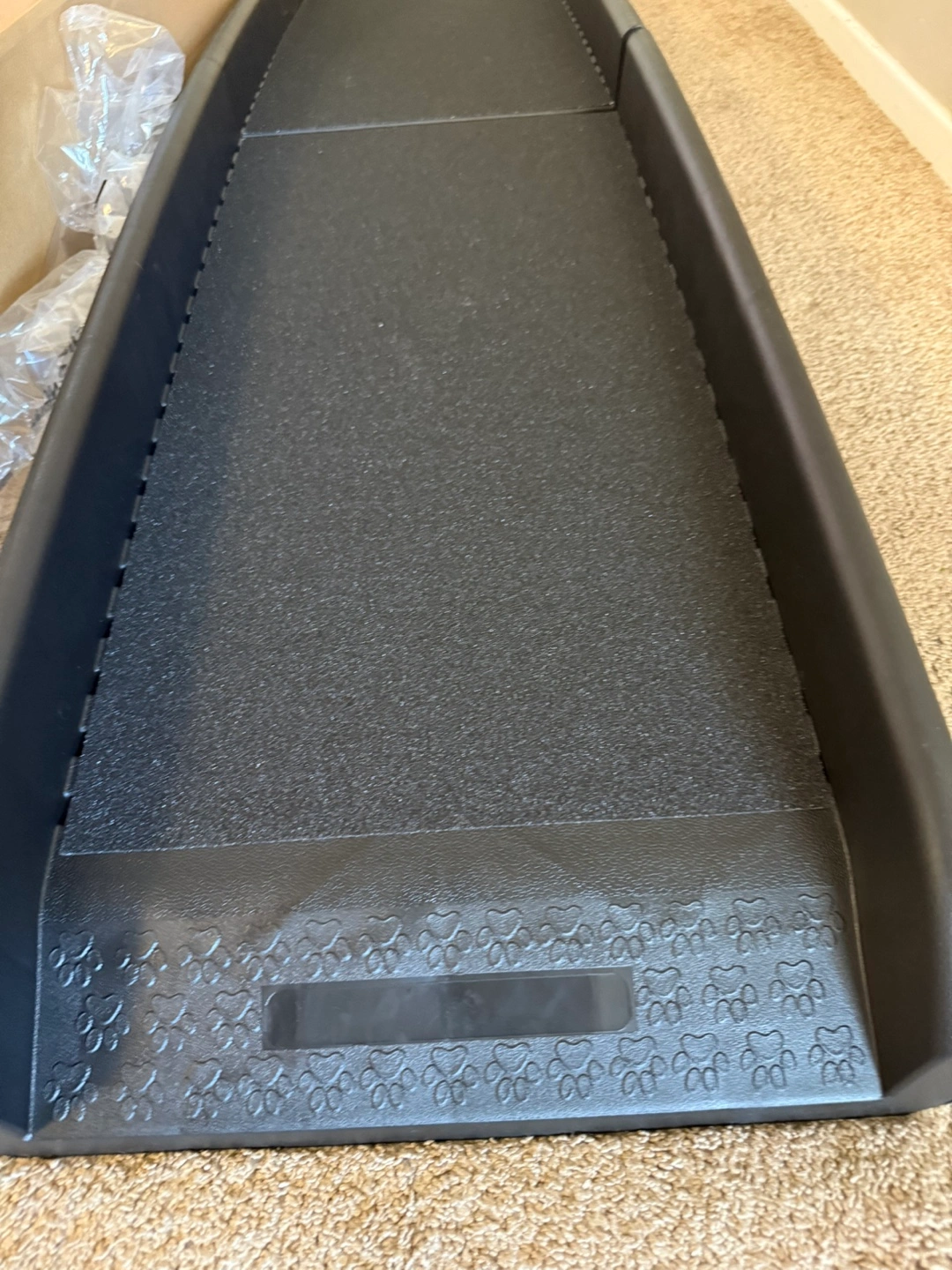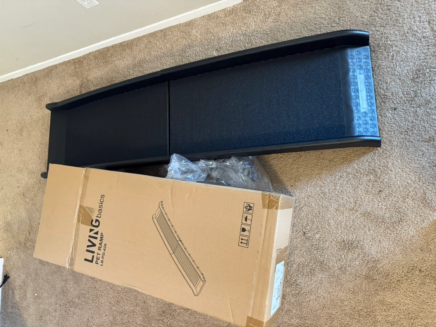 New pet ramp in box. Folds for easy storage. Supports up to 150 lbs. Black colour. Measures 62" long, 16" wide, and 4" high when unfolded. 31" wide when folded. Pick up at Frobisher Lane.