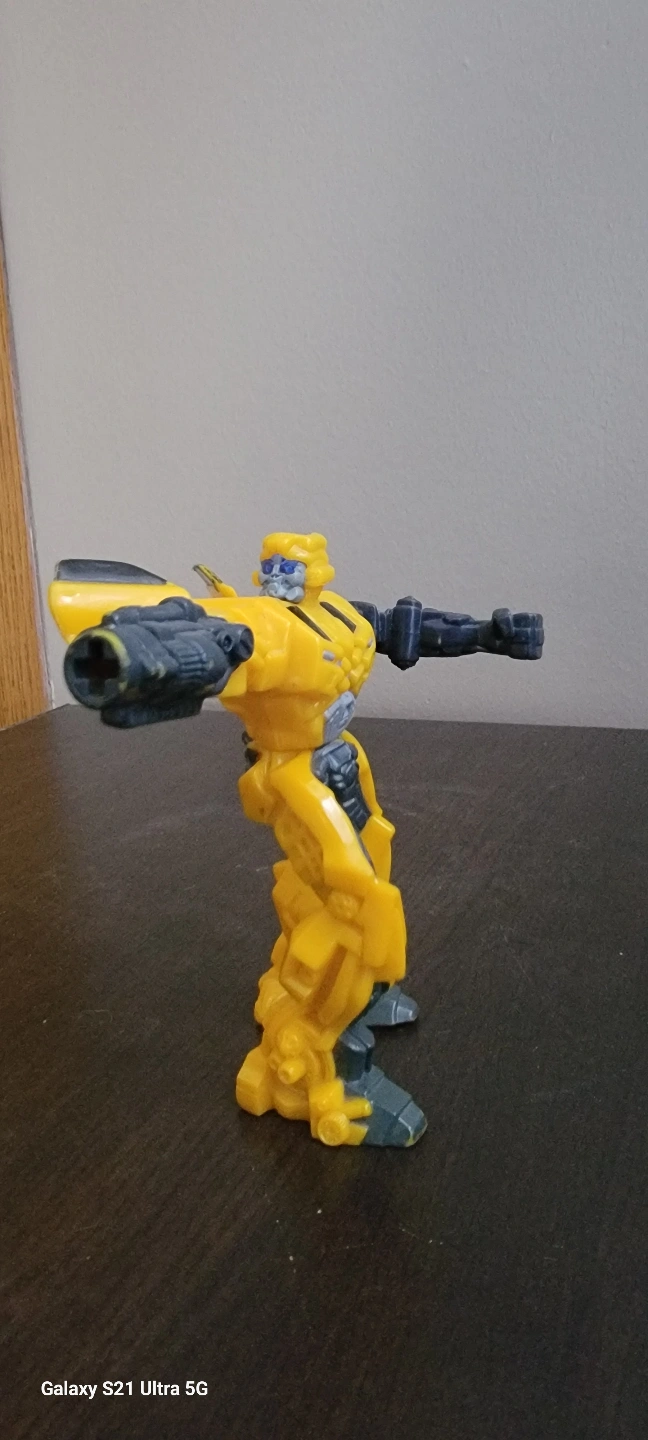 Small Rare Bumblebee Collectable Posable figure with 3 movable parts.Yellow and grey plastic. Gun accessory.
