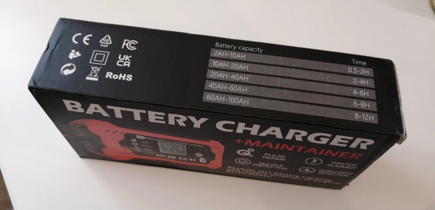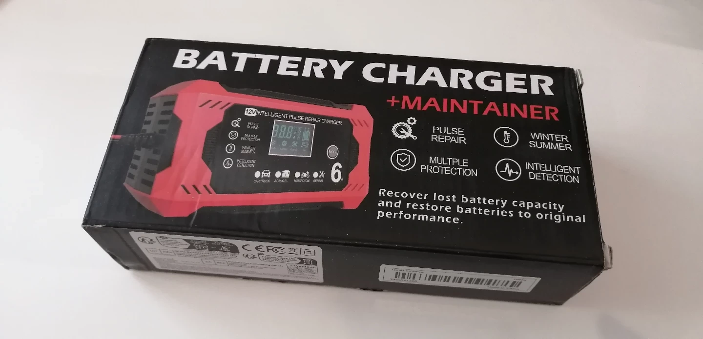 New battery charger and maintainer. Charges car, truck, and motorcycle batteries. Features pulse repair, multiple protection, intelligent detection, and winter/summer modes. Charges batteries from 2-100Ah.