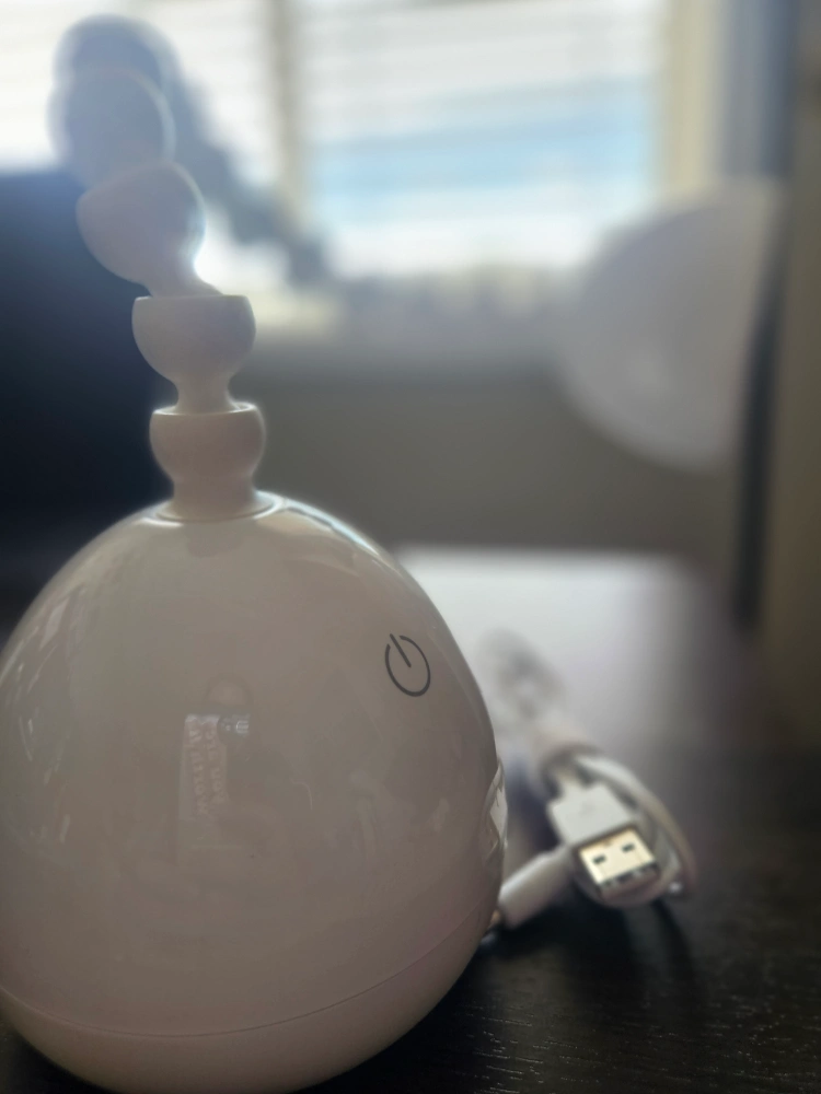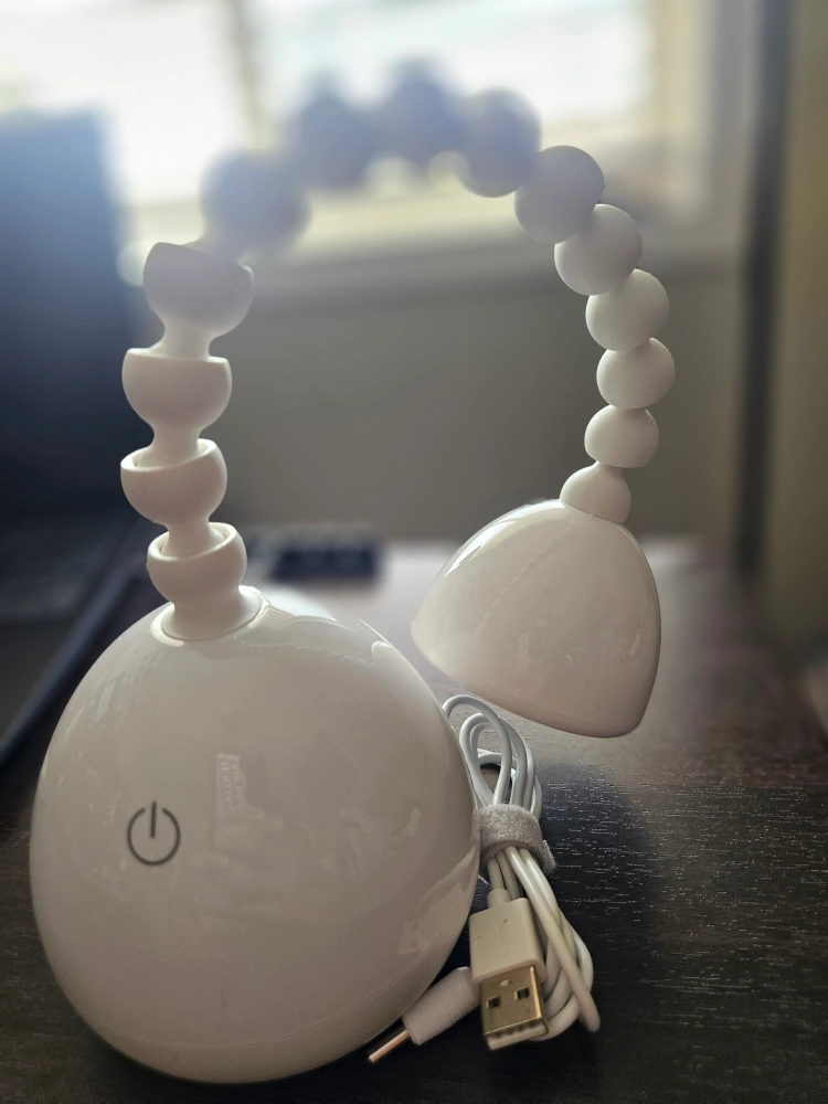 White LED desk lamp. Flexible gooseneck. USB powered. Compact and modern design. Perfect for studying or working.