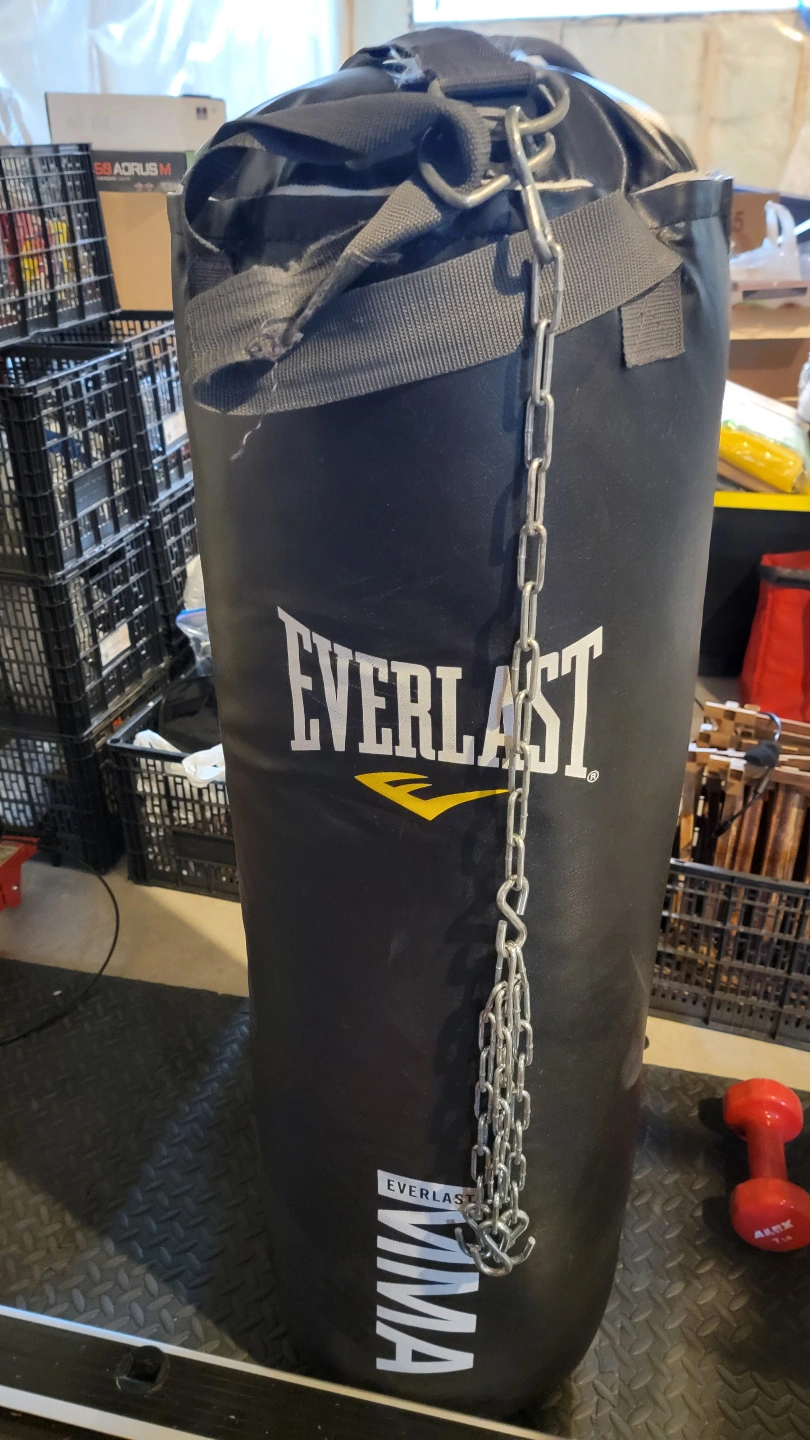 Everlast MMA heavy bag with chain. Durable construction. Great for home gym.