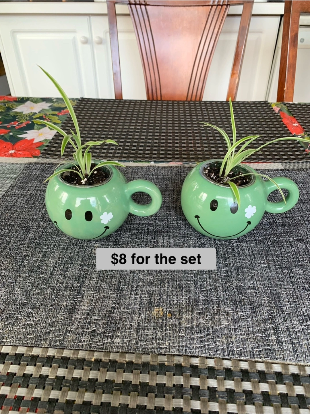 $8 for the set. Healthy plant w/ well established roots great for both indoors & outdoors! (pop can in picture for size comparison). Comes in a decorative Happy Face mug. Potted Dec1. - Grown indoors (Smoke Free Home) - Well-drained soil - bright, indirect light - Known for adaptable, easiest, purifying the air and non-toxic MEET-UP LOCATION (no mail. / no delivery): - Public Meet-up: McLean Community Centre (95 Magill Dr. Ajax corner of Westney/Magill)… OR … - Door Pickup: 1 block from the Centre (address to be provided on the day of pickup) SERIOUS BUYERS ONLY / FINAL SALE / Cash Payment at pickup / NO HOLDS (Items will be sold on a FIRST-COME/PAYMENT-FIRST-SERVE basis!)