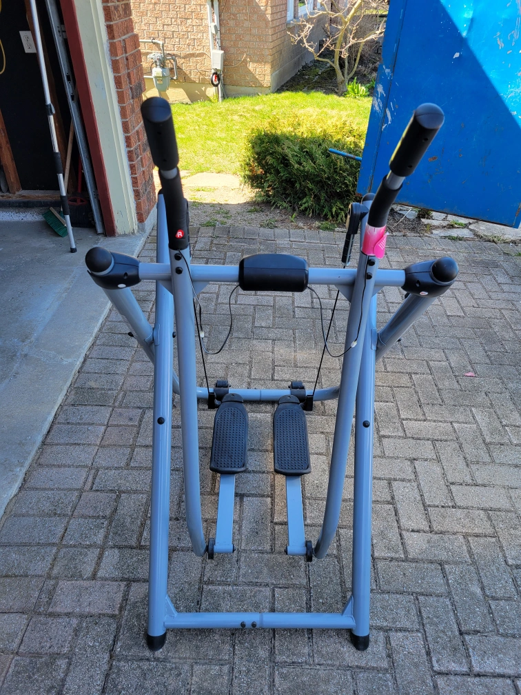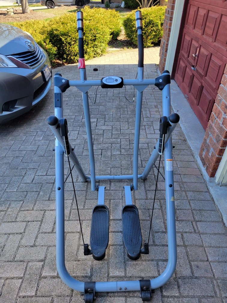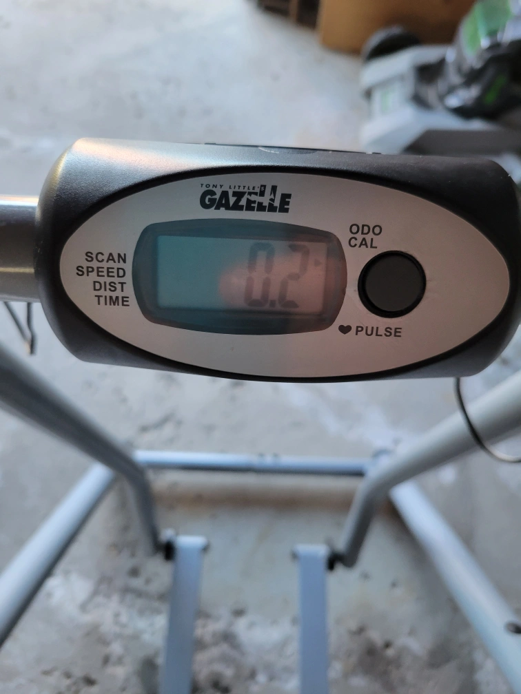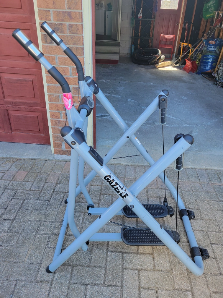 Used Gazelle exercise machine. Great for a home workout. Features include a digital display showing speed, distance, time, and pulse. Workout machine is in good condition.