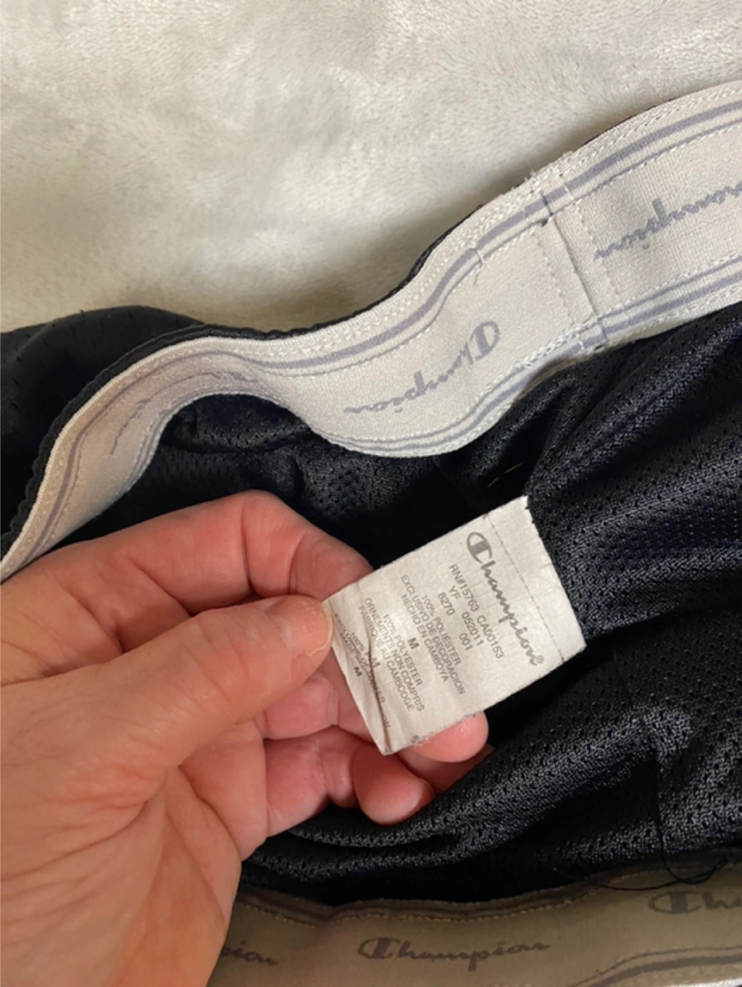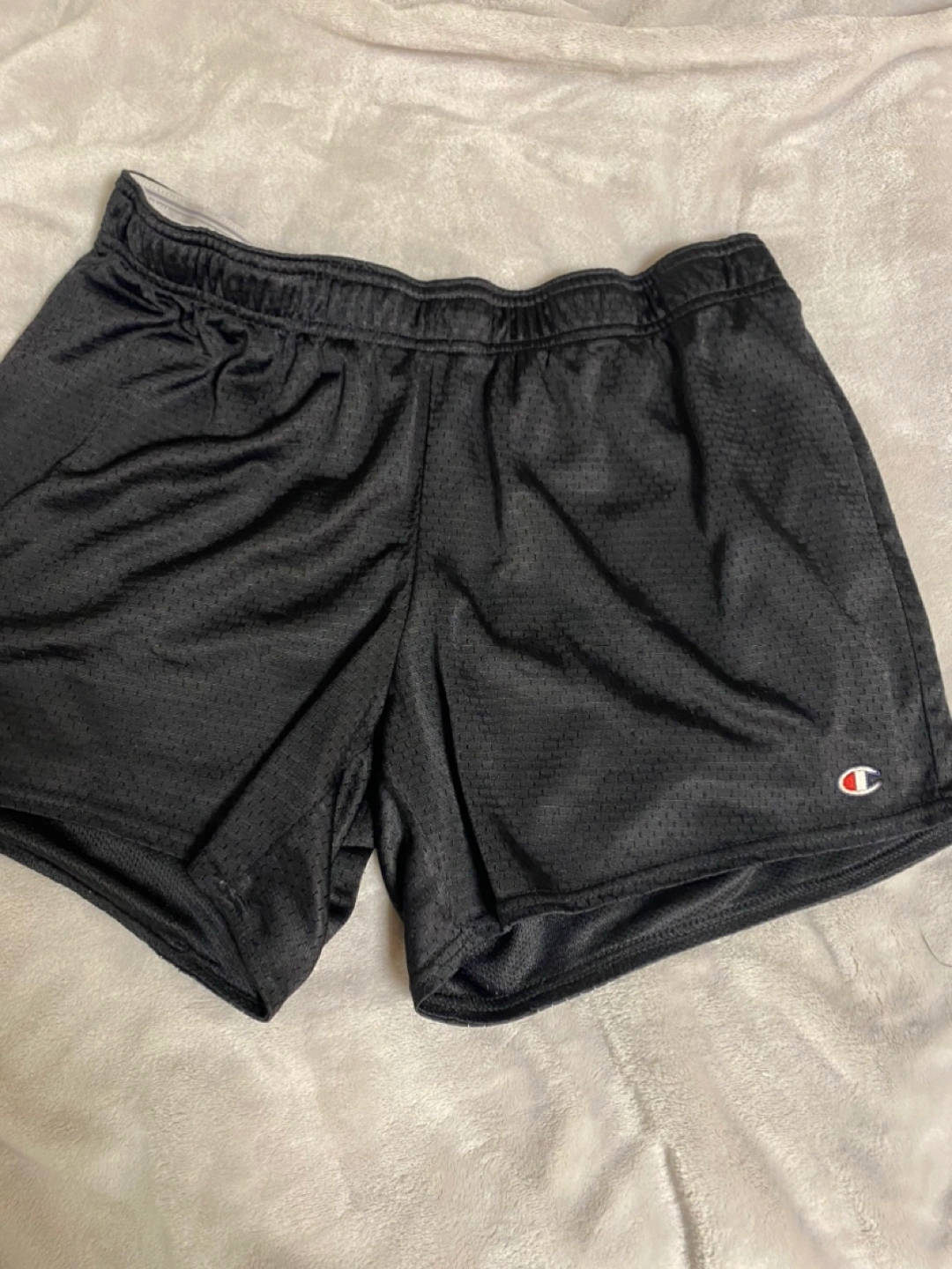 Black mesh shorts. Elastic waistband. Small Champion logo. Great for working out or casual wear. Ladies size medium in excellent condition. PICK UP PICKERING WHITES RD & STROUDS LANE