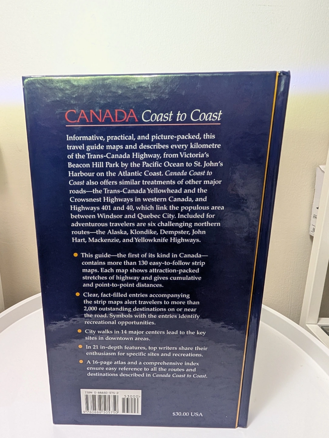 Reader's Digest Canada Coast to Coast Travel Guide Hardcover book Vintage book 1998 Informative travel guide. Over 2,000 places to visit along the Trans-Canada and other great highways. Many maps and pictures. Excellent condition. A comprehensive guide to travel in Canada offers detailed descriptions of more than two thousand destinations--from natural wonders to historical sites to cultural institutions--to visit along the Trans-Canada Highway or along other major Canadian routes, along with walking tours of fourteen major cities, in-depth articles on special locations and activities, listings of annual festivals, and more. 12,500 first printing. Pick up by Keele and Rogers Cash only Check out my other posts