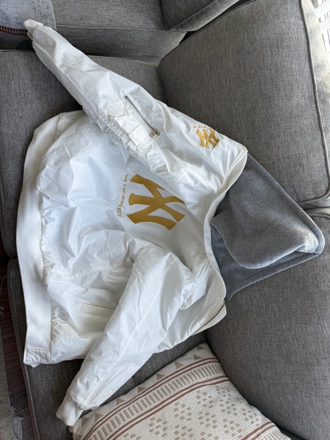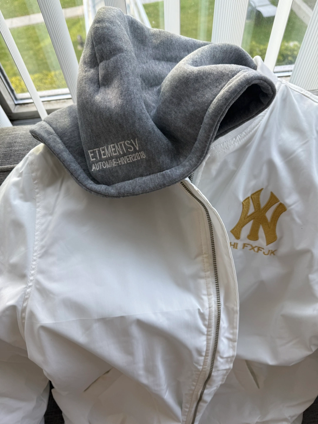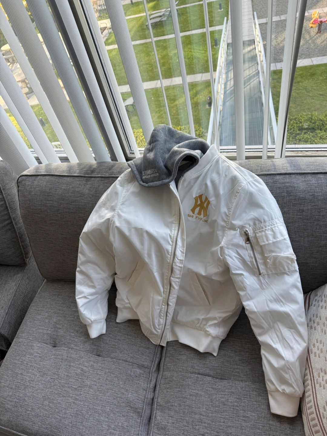 Casual Baseball Jackets streetwear Mens hip hop Outwear with detachable grey hoodie Color : white with hood Totally brand new