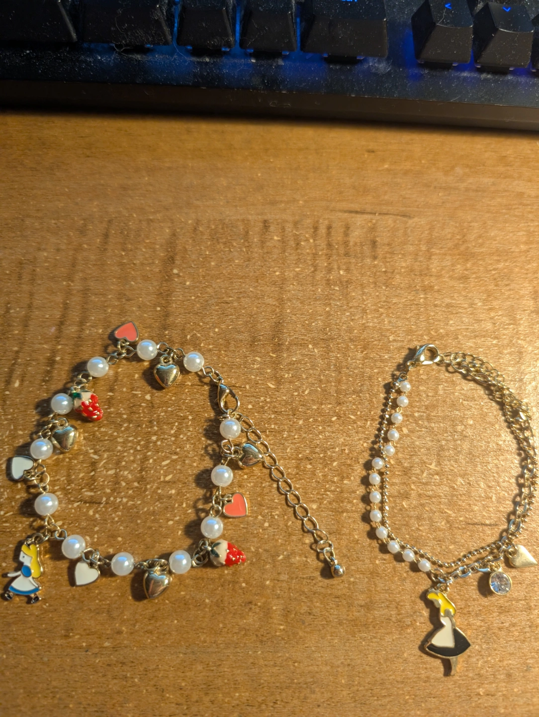 Alice in Wonderland Bracelets brand new, adjustable, both from Hong Kong, 10 dollars each PM please :)