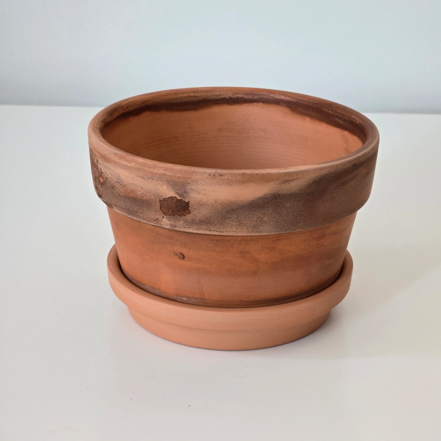 • No chips or cracks • These pot and saucer had been used, and therefore there are marks • The pot and saucer are washed and clean • Measurements - pot/saucer: ▪ Pot: ▪ Height: 7 cm (2.75") ▪ Diameter: upper 13 cm (5.1") | lower: 10 cm (3.9") ▪ Internal diameter: 12cm (4.7") ▪ Saucer: ▪ Height: 2.5 cm (0.98") ▪ Diameter: 11.5 cm (4.53") ▪ Internal diameter: 9.5 cm (3.74")