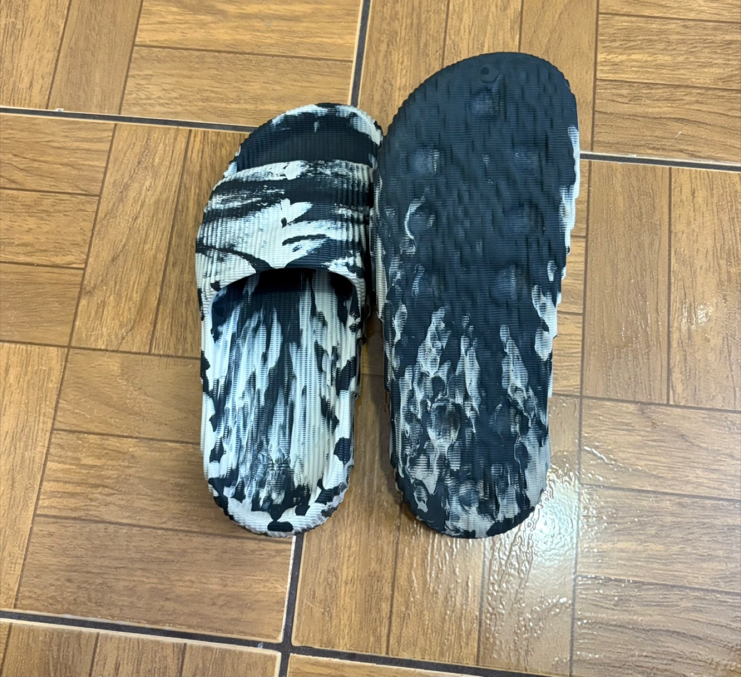 Pair of Adidas slides. Carbon Aluminum print. Comfortable and lightweight. Great for summer. No box( i threw it away) Pre- owed Barely Used. Authentic. I bought it from Adidas Website. ➡️I’m a size 8 but the Size 6 in this Slide fits me.⬅️ ➡️The Price is Firm. Original Price- $70 plus Tax 😊