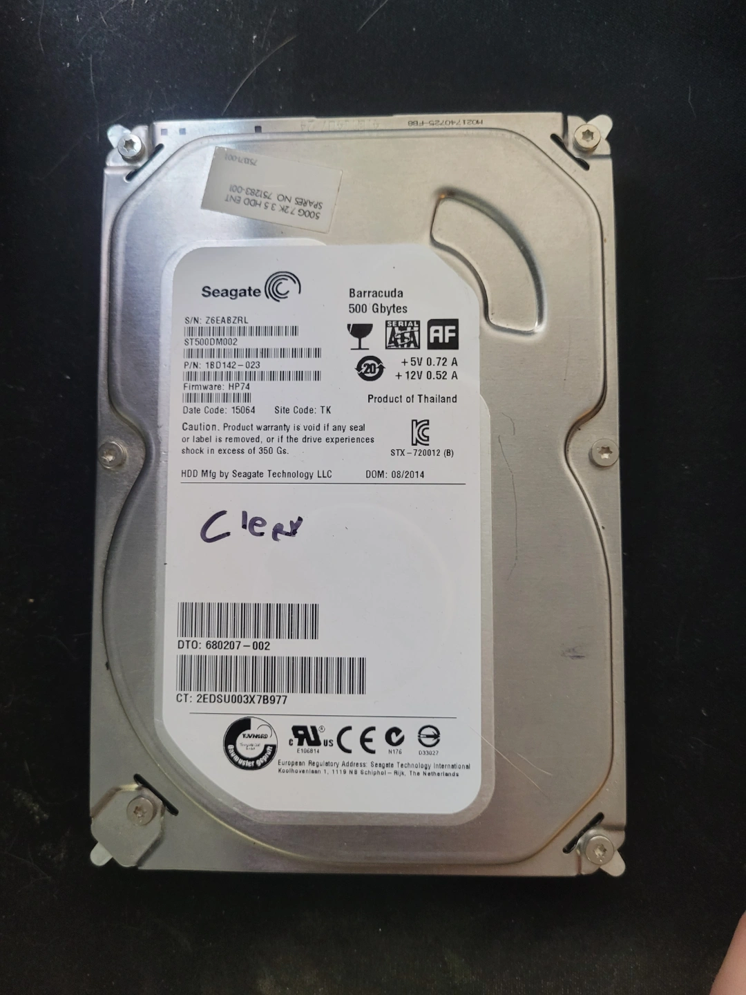 wd hdd and other 320gb hdd Used Seagate Barracuda 500 GB hard drive. Removed from a working computer. Sold as is. tested and works.