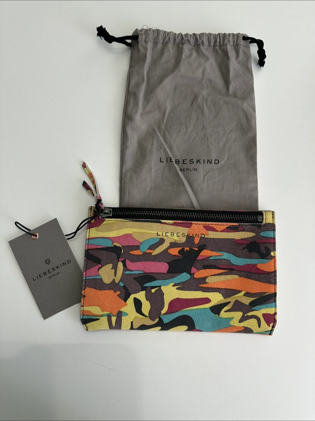 New with tags Liebeskind Berlin clutch/pouch. Multicoloured camouflage print. Zipper closure. Leather/suede material. Includes a dust bag. Excellent condition. Meet at King, Union Station or in St. Lawrence Market area.