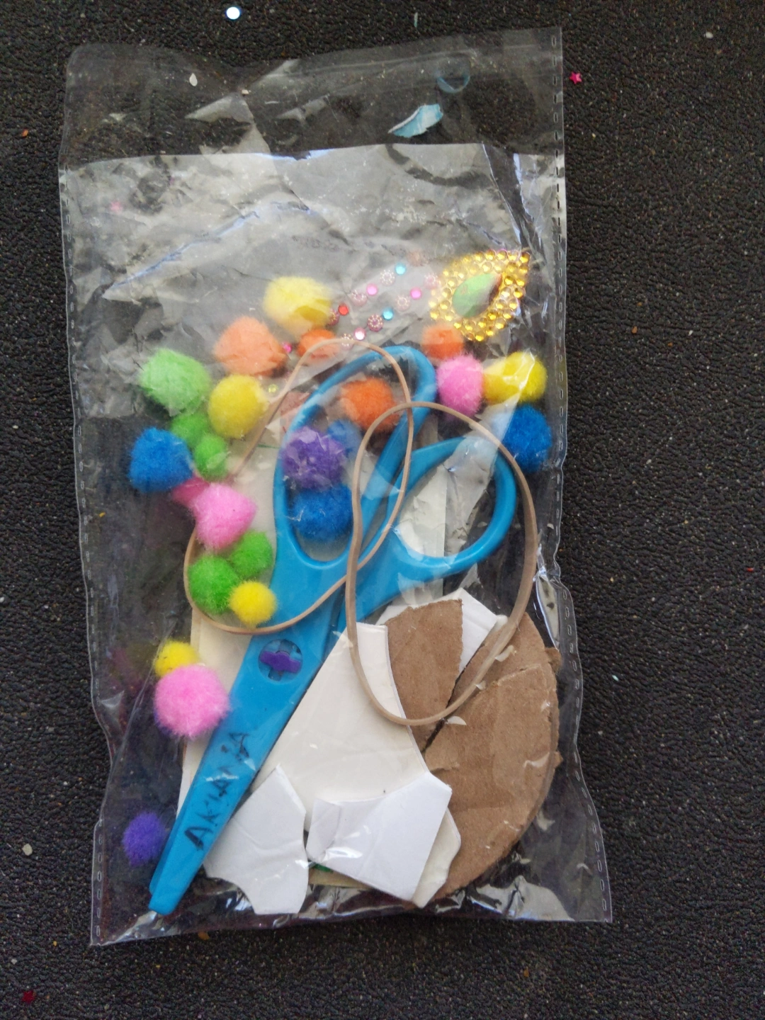 Fun craft kit includes pom-poms, self-adhesive gems, rubber bands, scissors, word search, fancy paper and various pre-cut cardstock shapes. Perfect for imaginative play and creative projects. Great for kids. cash only porch pick up,no delivery,no shipping.