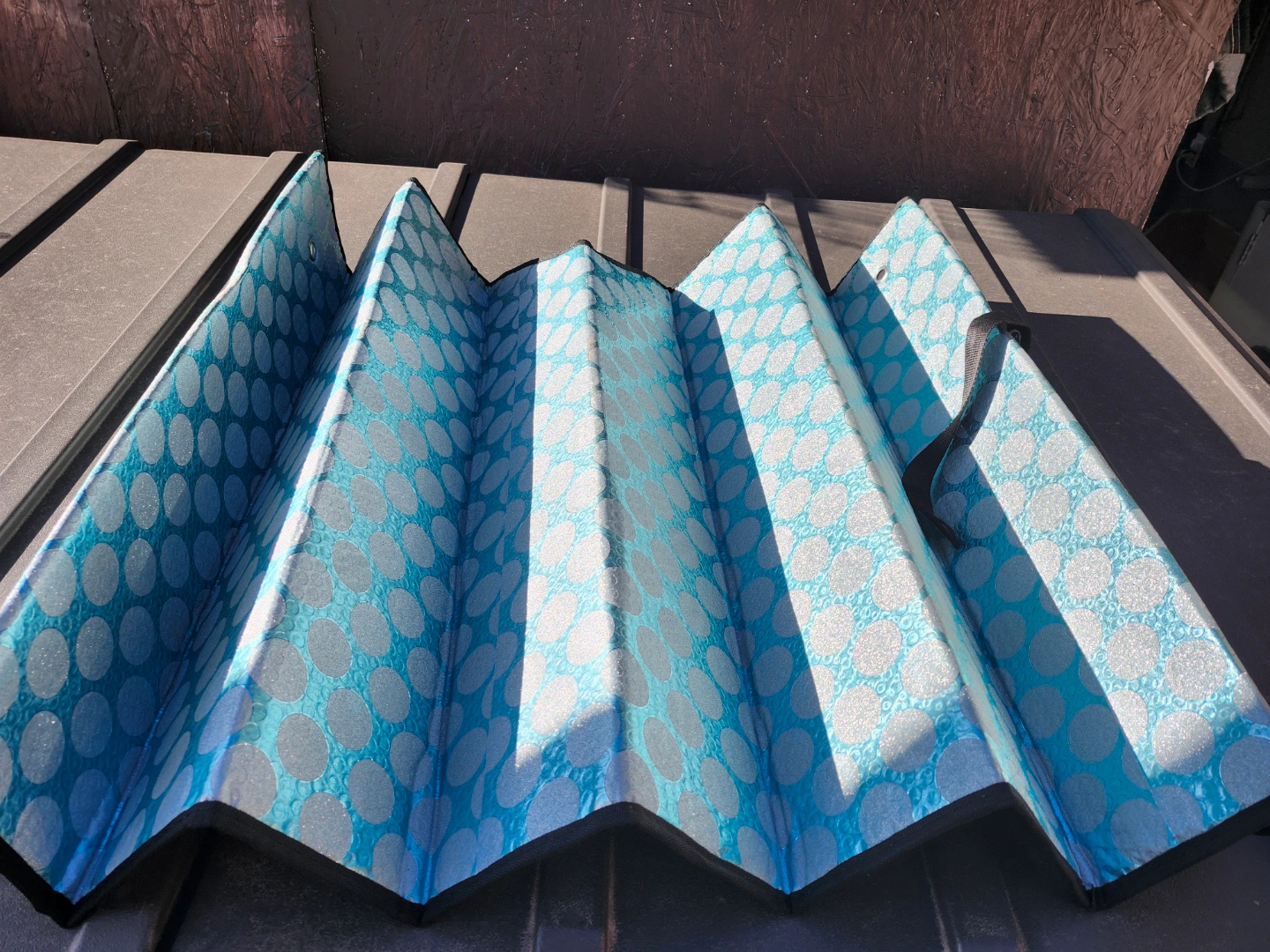 Keeps your car cool on hot days. Folds neatly for easy storage.