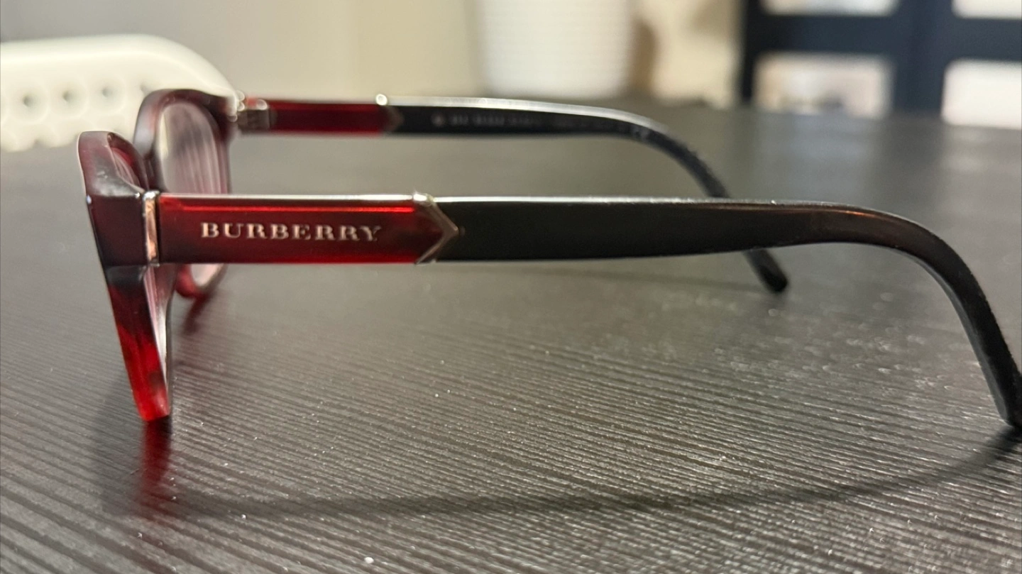 PRICE DROP from $50 to $30 Women's eyeglasses. Red frames with black temples. Excellent condition. Burberry branding on temple. 4 years old