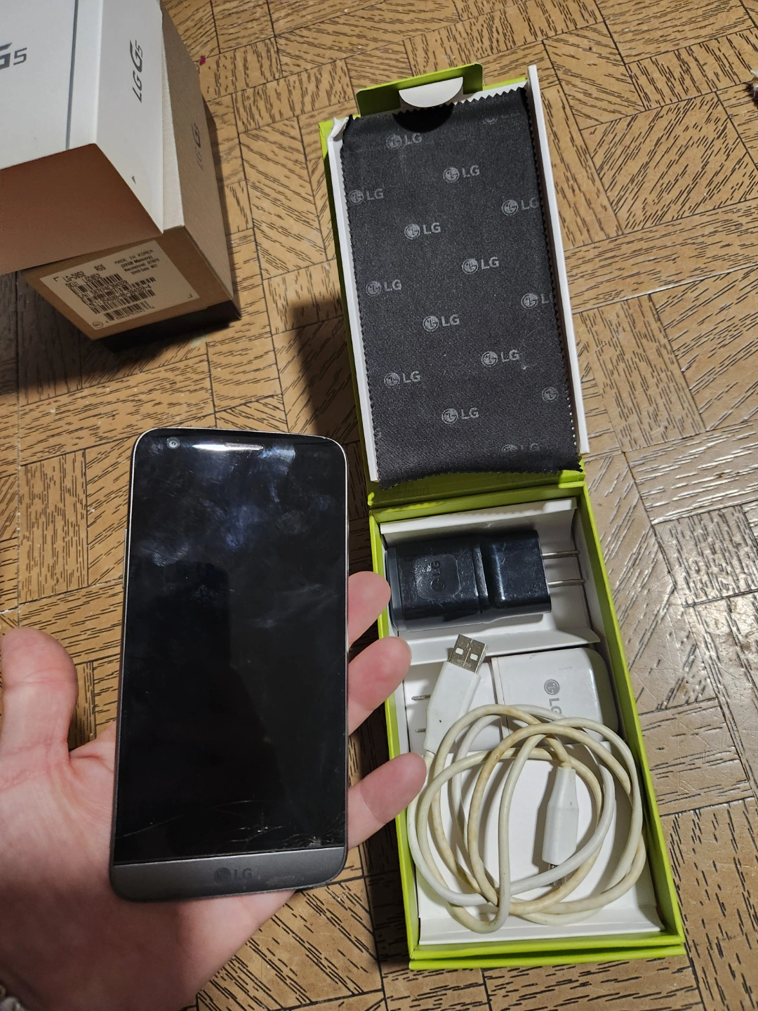 Good working condition corner has a cracked screen as seen in other images. Includes charger with 2 boxes. Otterbox case sold separately (please check other listing). Will need a wipe down, dirty from the case it was in. Factory reset.