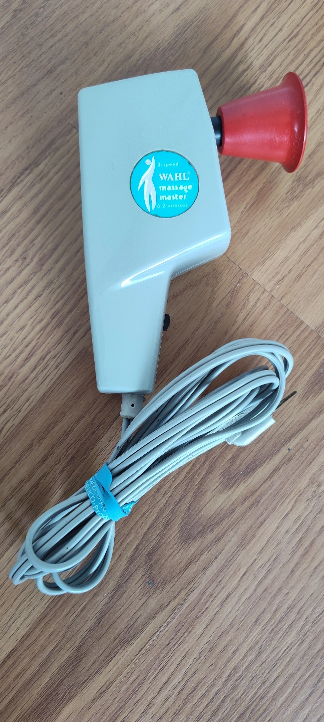 Wahl 2-speed massage instrument. Light grey plastic casing. Red massage head. Collectible item. Check out my other listing. There may be something else you're also interested.