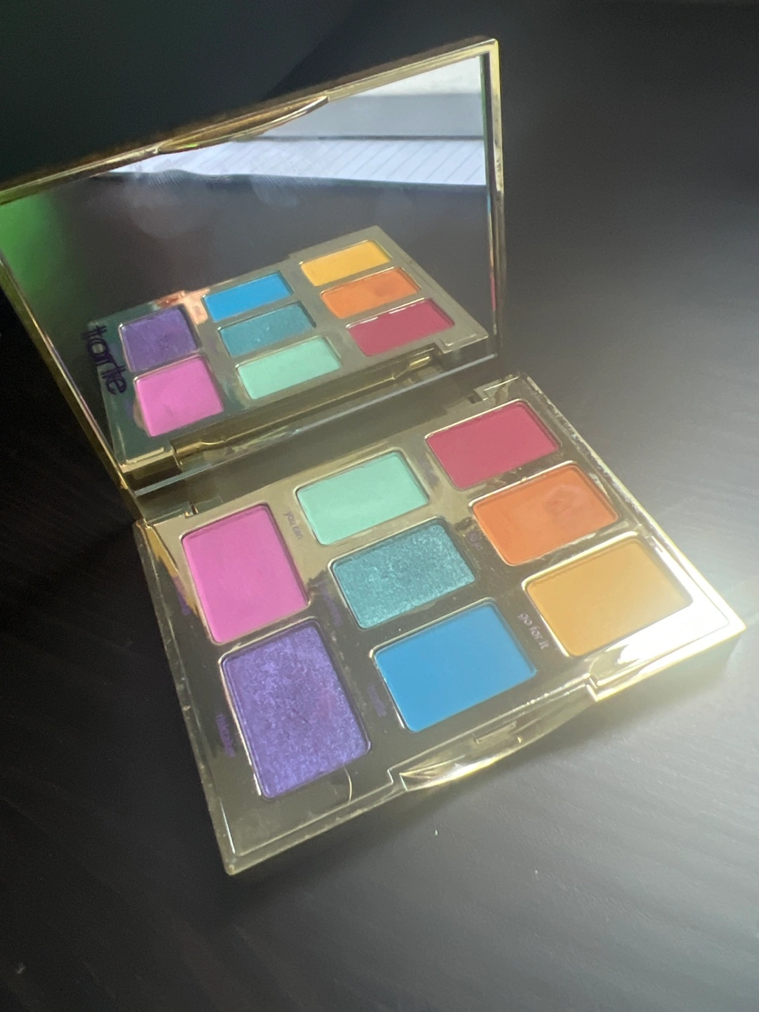 Pre-owned Tarte eyeshadow palette. Twelve vibrant shades. Compact mirror. Colourful design. Some pan usage.