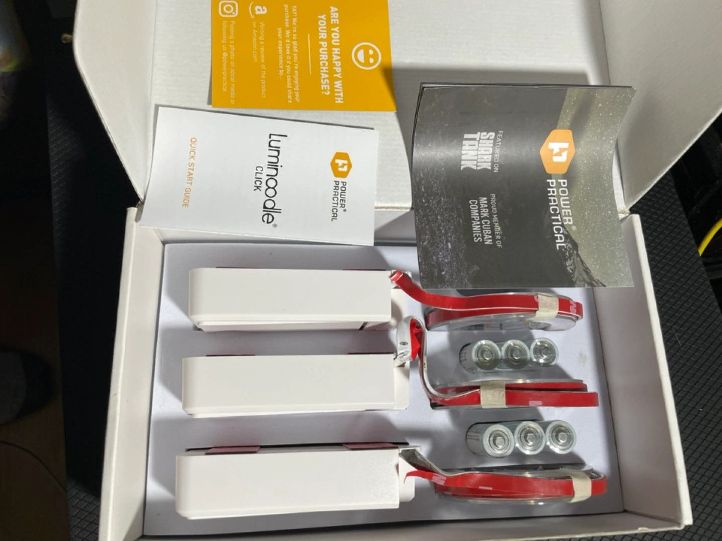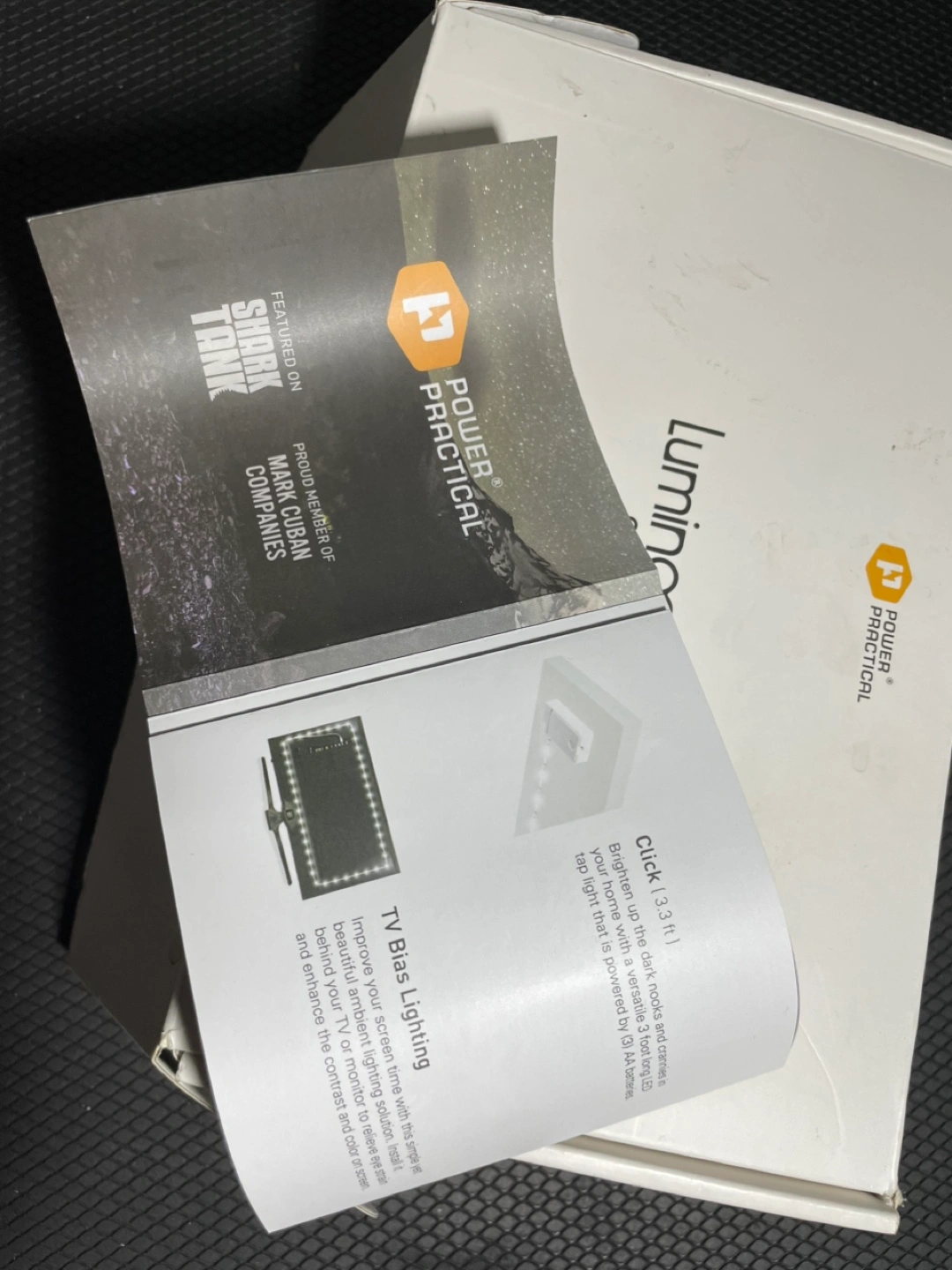 Brand NEW. Super easy to install & use! Three battery-operated LED light strips. Easy installation. Perfect for under-cabinet or shelf lighting. Includes adhesive strips and batteries. Featured on Shark Tank. Includes Amazon coupon