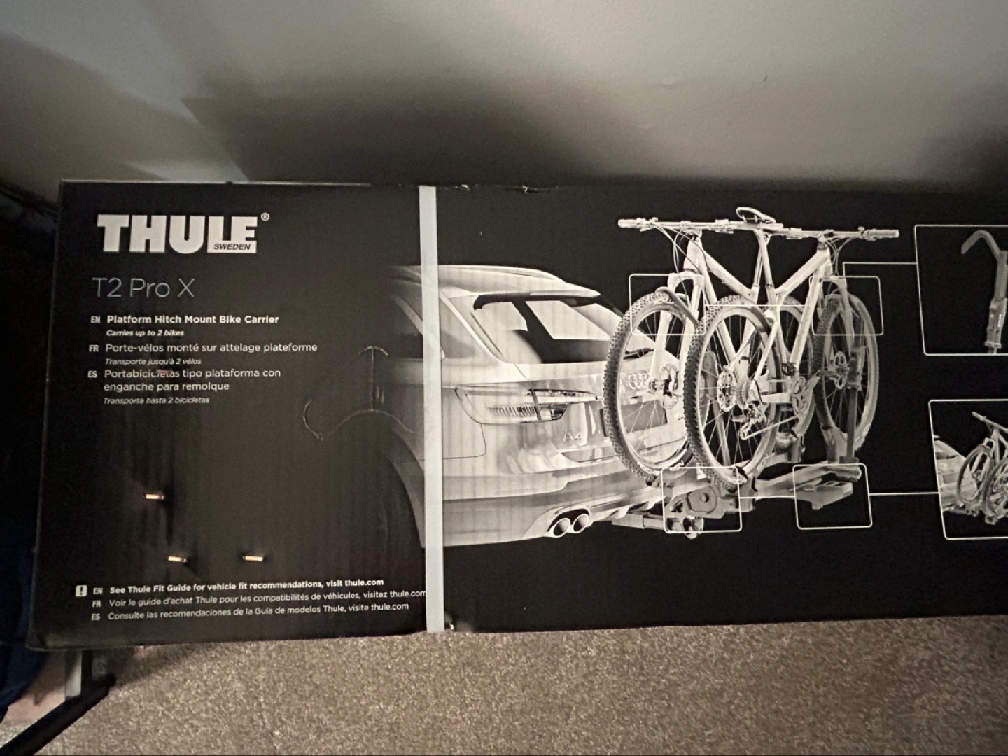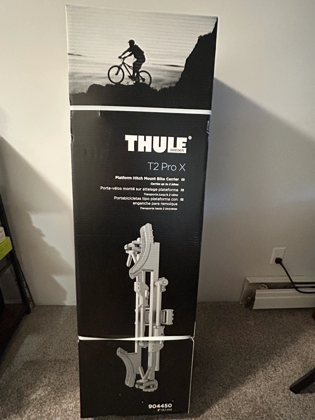 Brand new in sealed box Thule T2 Pro X Bike Rack for 2 bikes. Fits 2" receivers. Bought a brand new car and came with this bike rack but I don't really need it!! This rack goes for $784 tax included at Canadian Tire. Save $134. Price FIRM!! Pick up in Kitsilano.