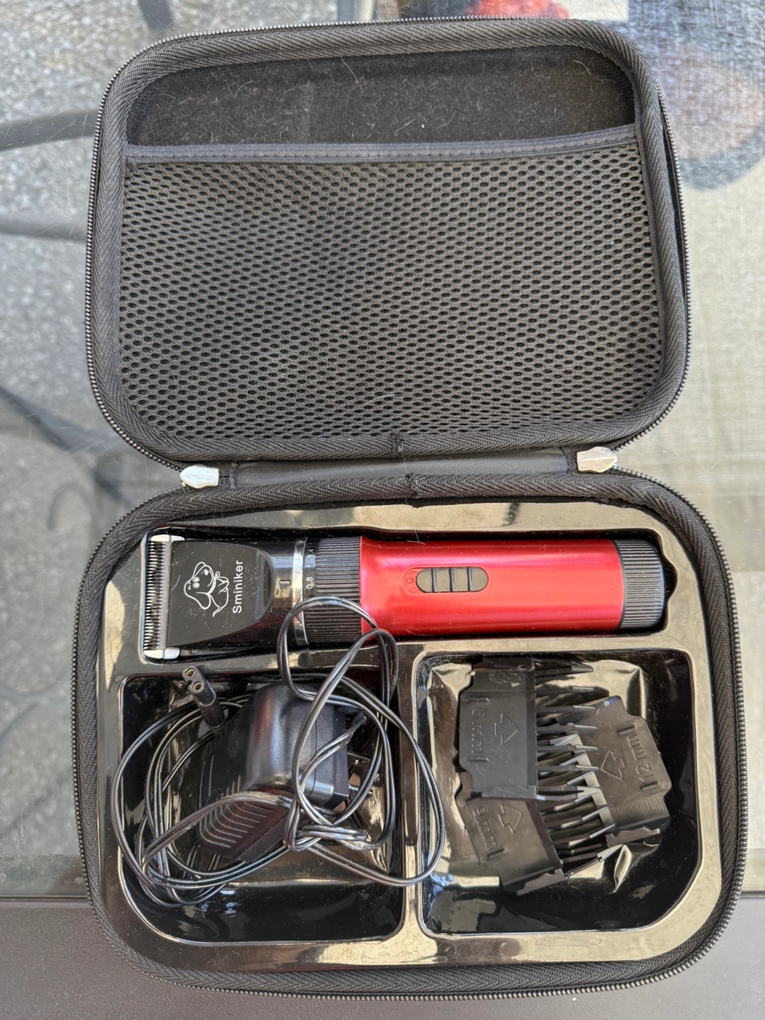 Cordless pet clipper kit. Includes multiple attachments. Convenient carrying case. Great for grooming pets.