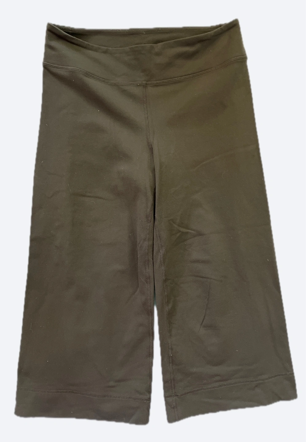 Dark brown cropped yoga pants. Excellent for exercise or casual wear. Comfortable and stretchy material.