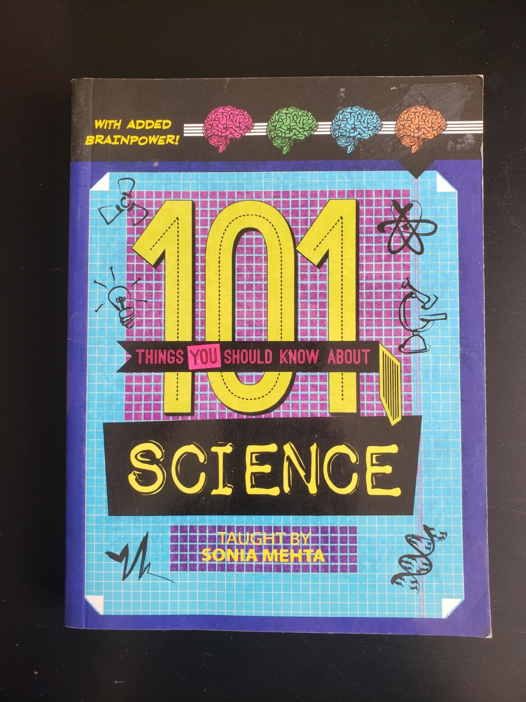 Educational book for ages 10 and up. Colourful illustrations. Covers various science topics. Pocket guide with added brainpower.