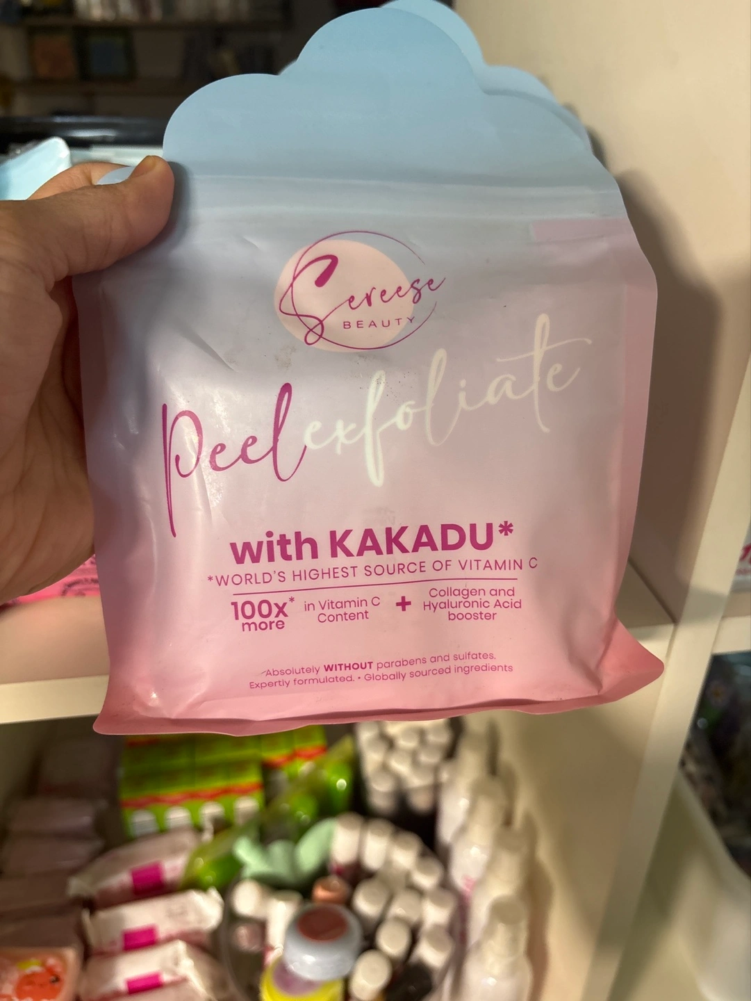 Peel exfoliate with Kakadu. World's highest source of Vitamin C. Contains collagen and hyaluronic acid booster. 100x more Vitamin C content. Absolutely without parabens and sulfates. Expertly formulated. Globally sourced ingredients. pick Up walden se