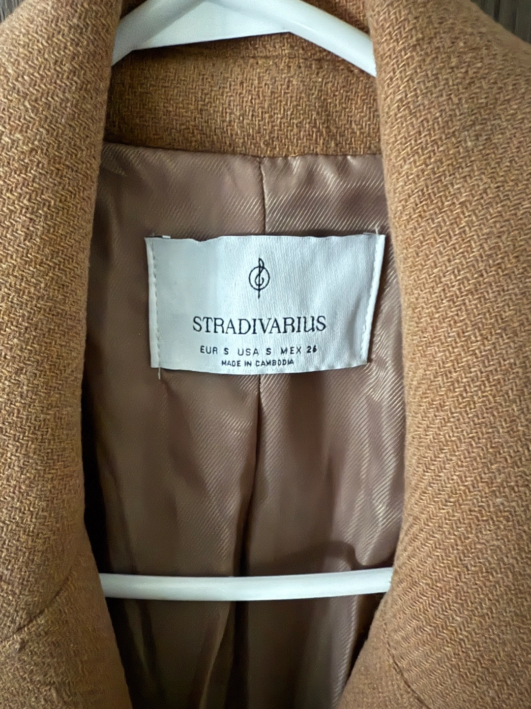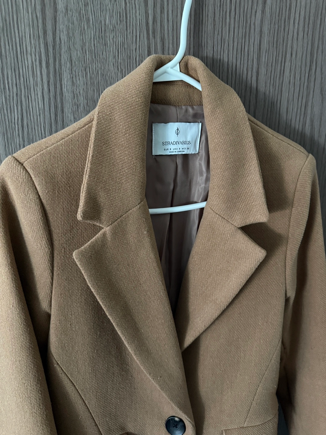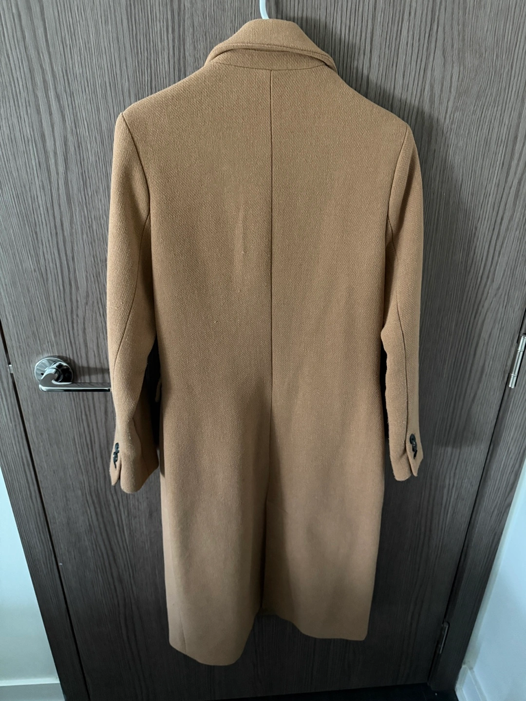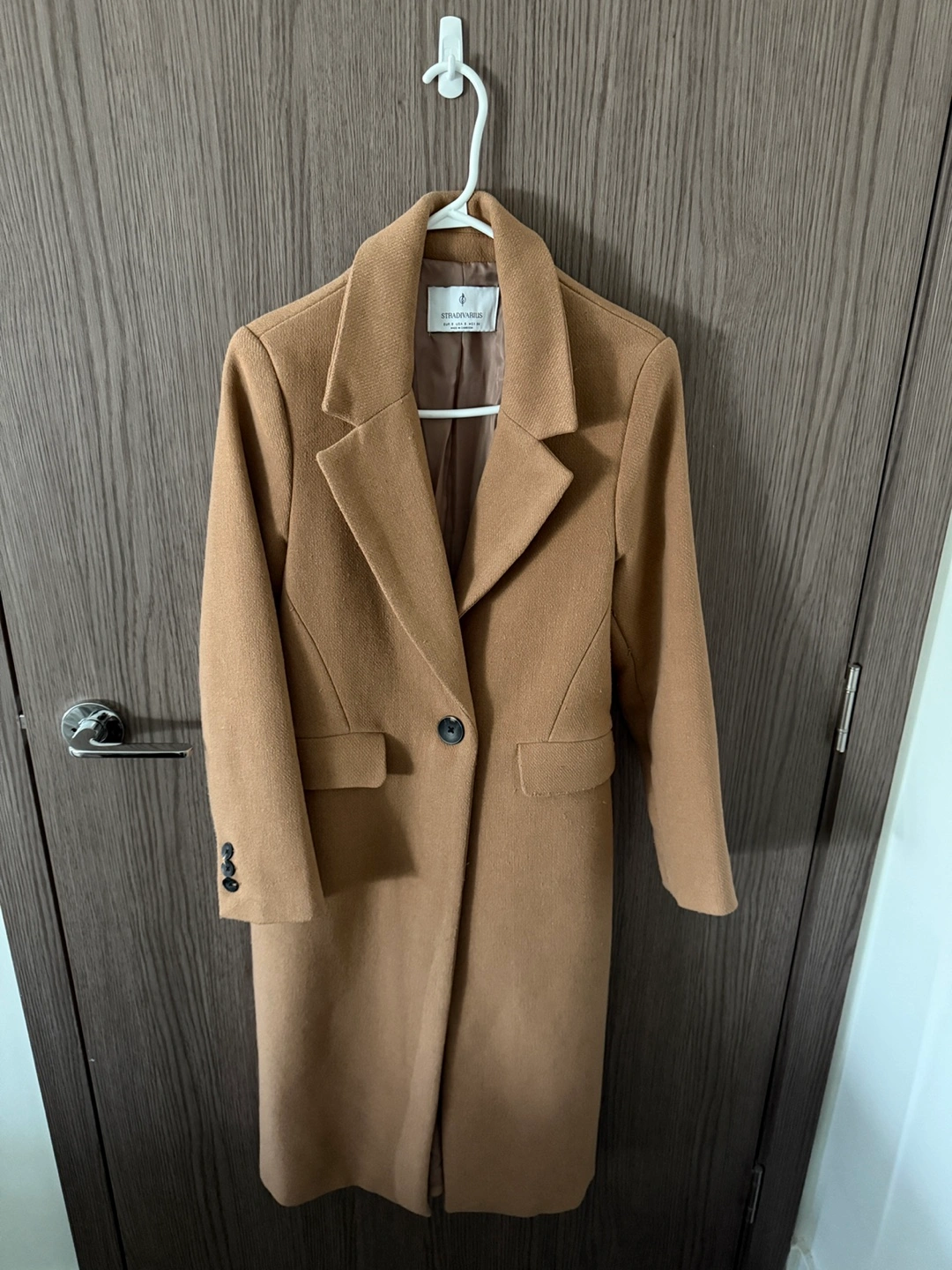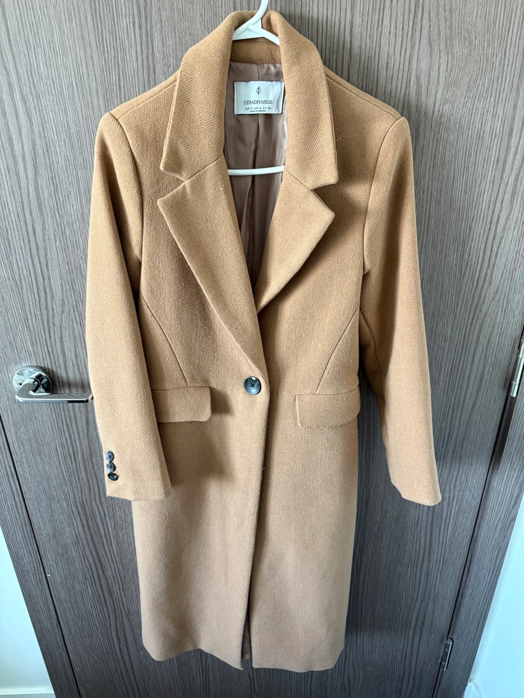Women's camel-coloured coat. Long sleeves, single button closure. Size XSMALL