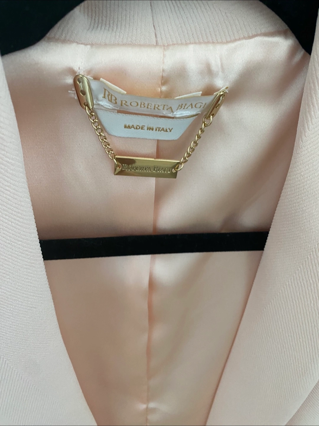 Gorgeous peach-coloured blazer. Made in Italy. Long sleeves, collared. Classic style, perfect for work or a special occasion.