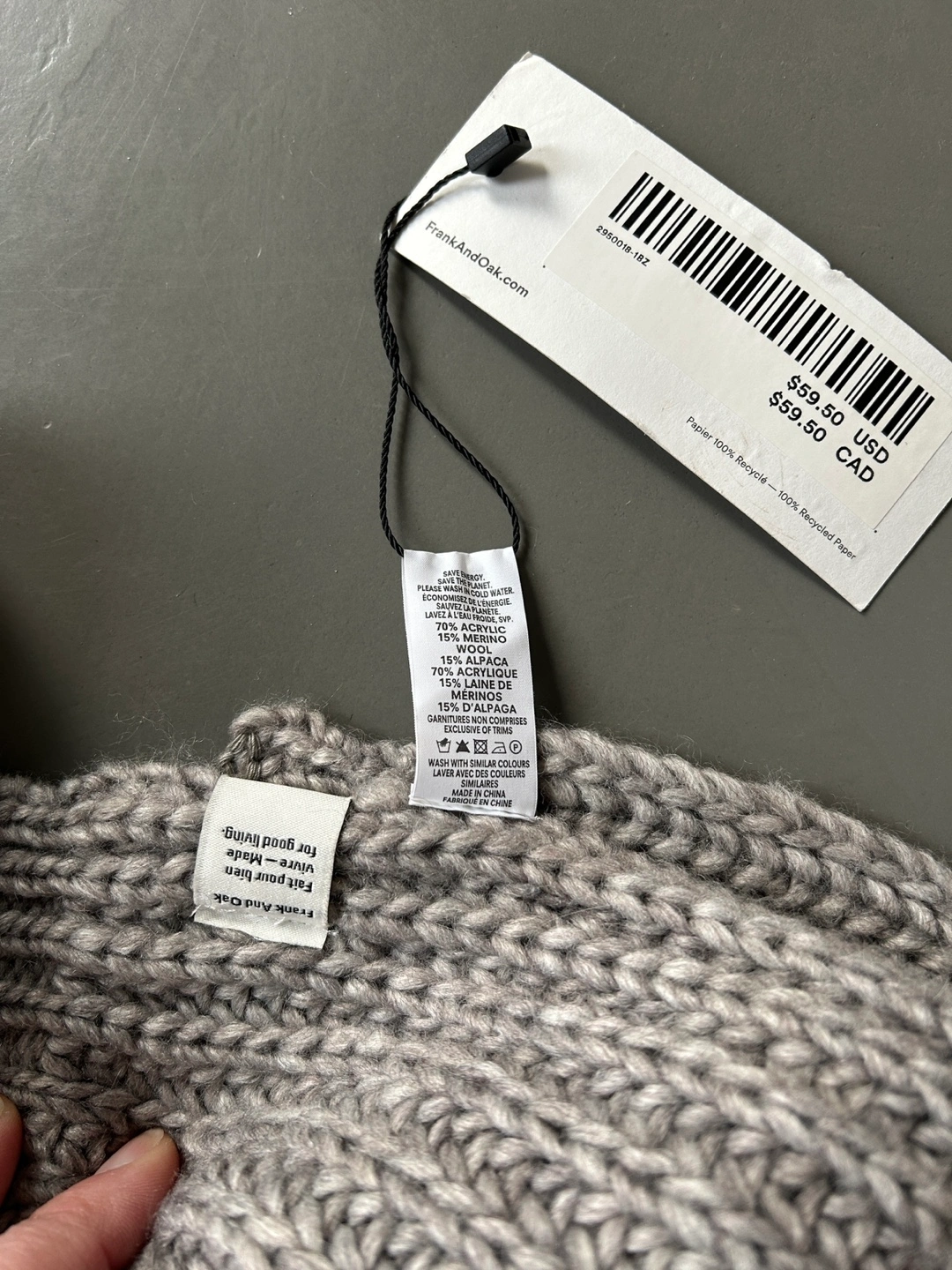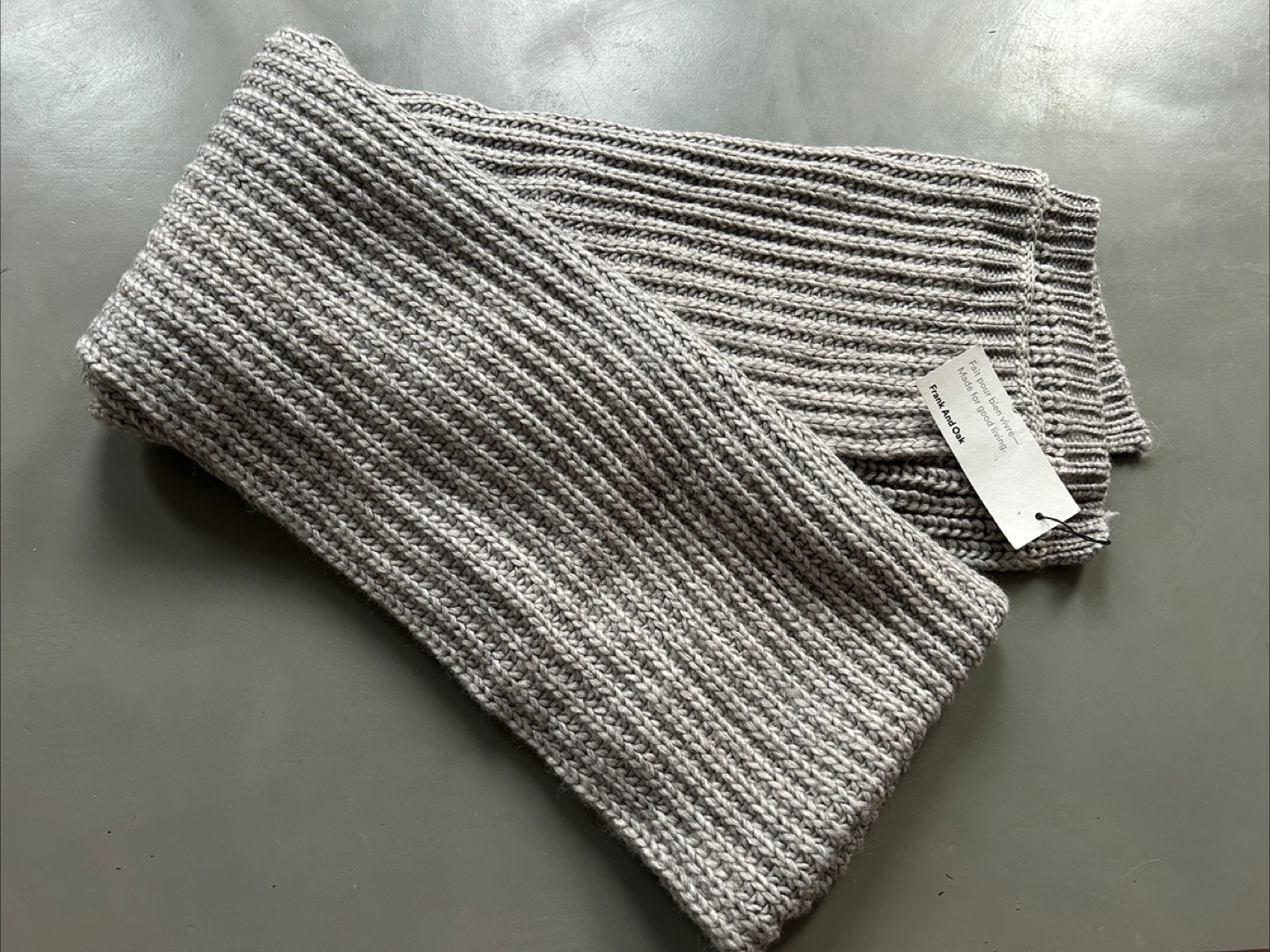 Long and cozy grey ribbed knit scarf. Blend includes merino wool and alpaca wool for warmth and softness 🦙BNWT! Pick up in the Beaches at Queen and Victoria Park.