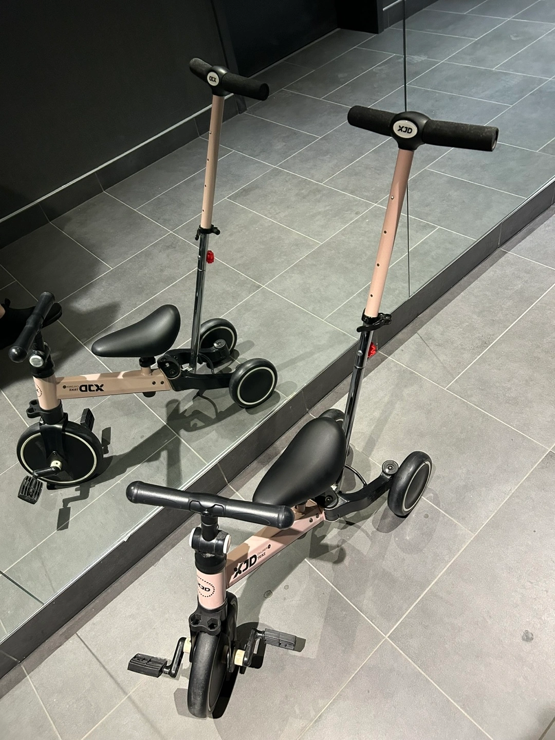 Gently used toddler tricycle. Converts from a stroller to a balance bike and tricycle. Adjustable handlebar. Suitable for ages 1-5 years. Features a comfortable seat and durable wheels. Pink color. 1 - 3 years old. We recommend 12-24 months baby to use three-wheel mode. 2-3 years old baby uses two-wheel balance bike mode. Best 4 in 1 design tricycle and balance bike for baby. Meet kids requirements at different ages. Perfect kids' tricycles for children.