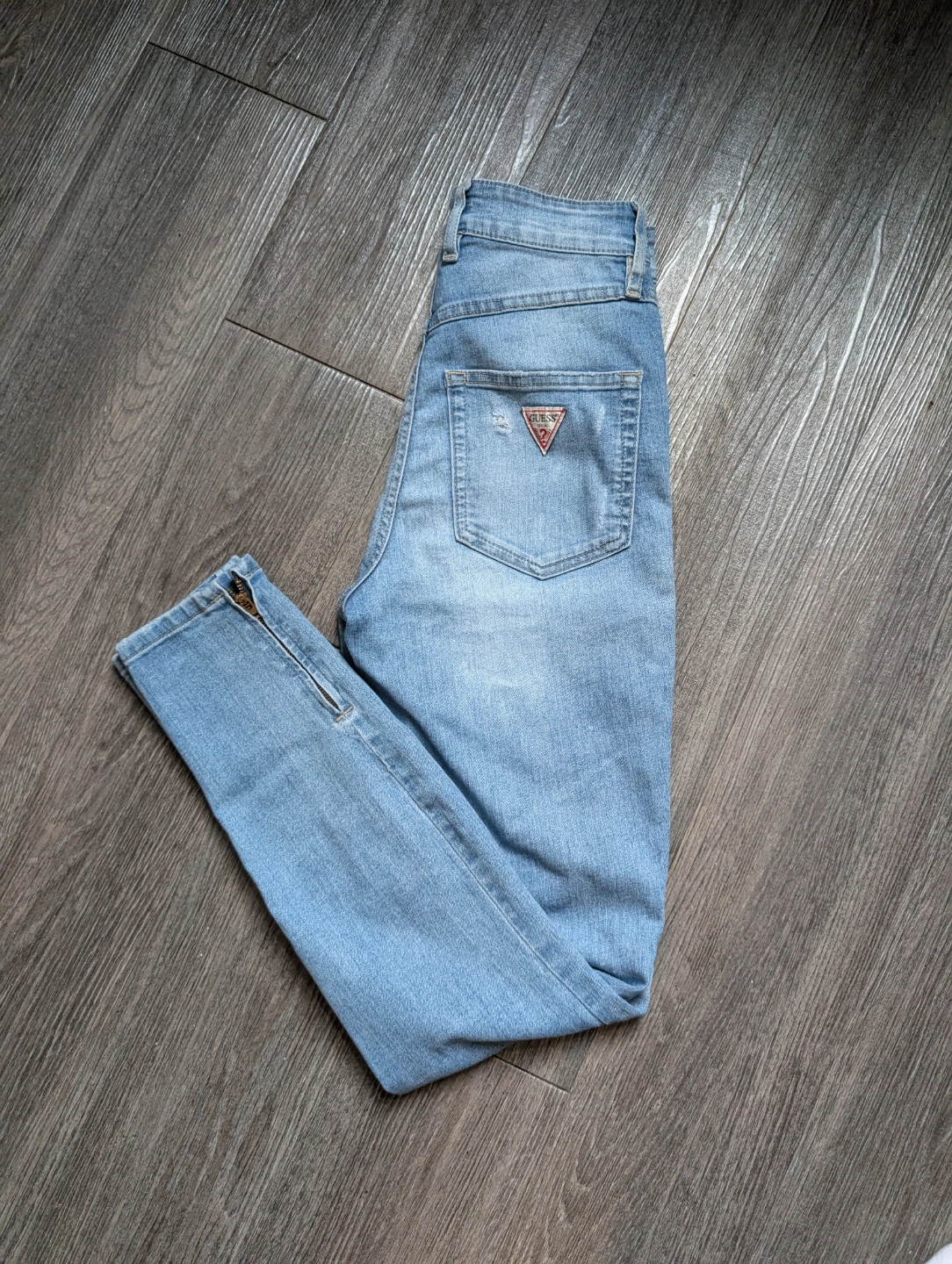 Light wash denim jeans. Zip detail at ankles. High waisted. Size 3. Excellent condition. *Cash only *Pick up in Clarkson Mississauga